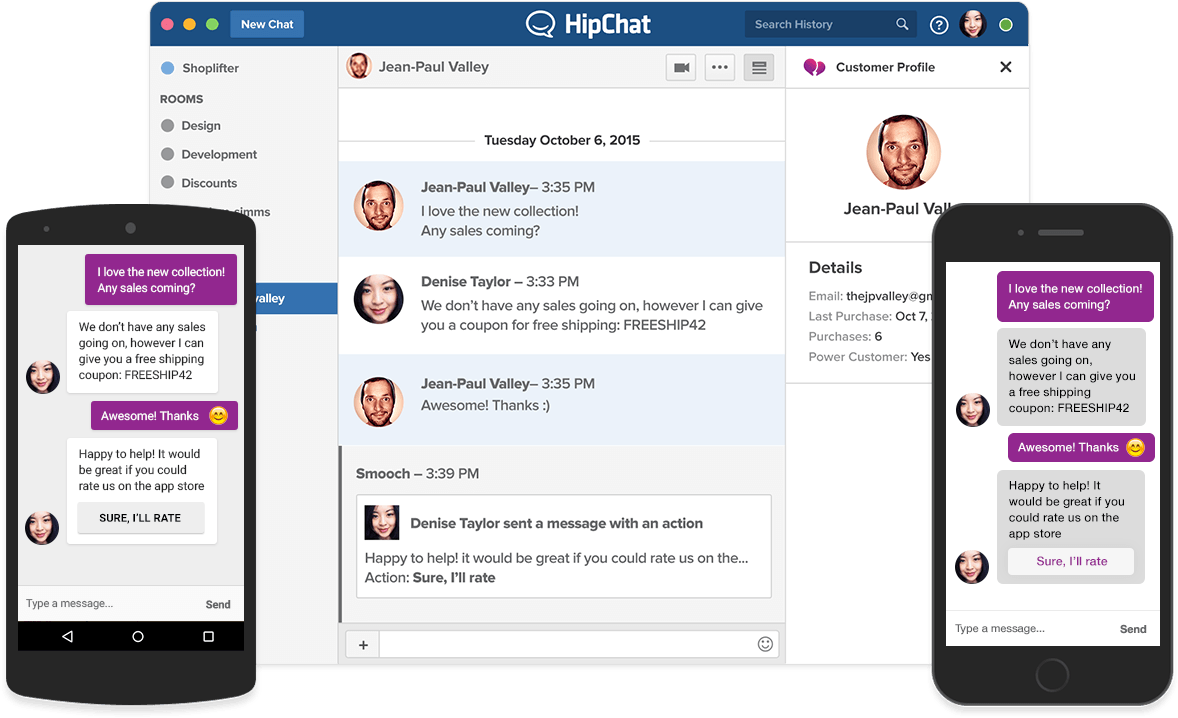 The folks at HipChat reached out to us a few months ago to work with their newest set of developer APIs, HipChat Connect. They wanted us to bring our popular Slack integration (https://smooch.io/slack) over to HipChat. They upped the ante by releasing a set of APIs that allowed us to extend the functionality of the HipChat client and create a … See more