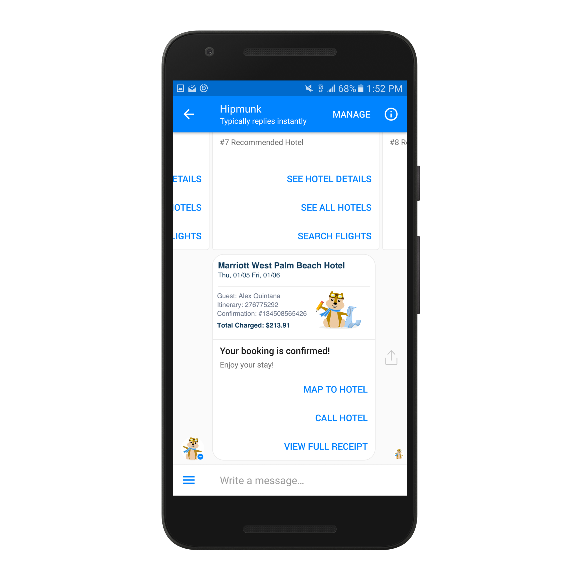 Hipmunk's Hotel Facebook Messenger Payment Integration