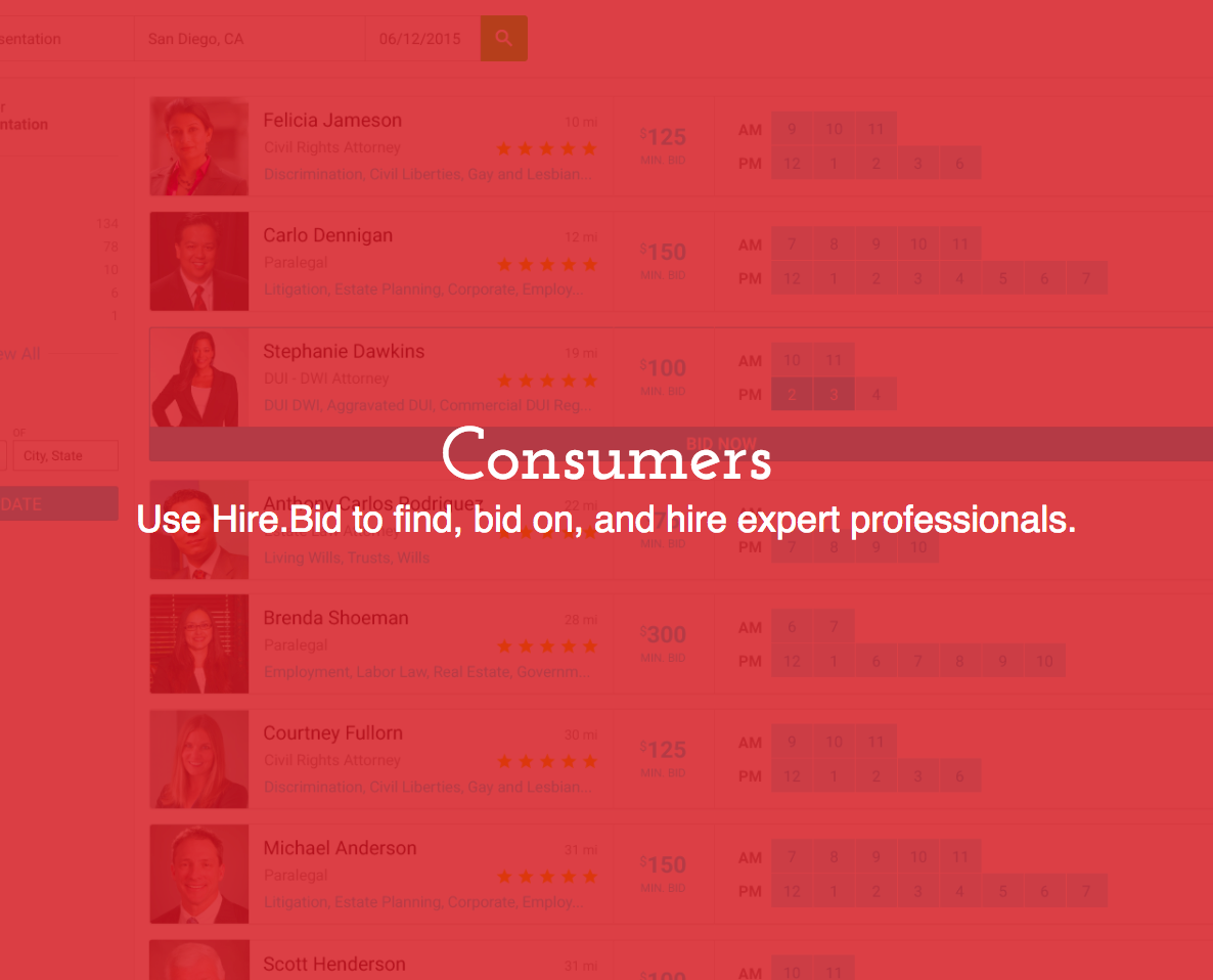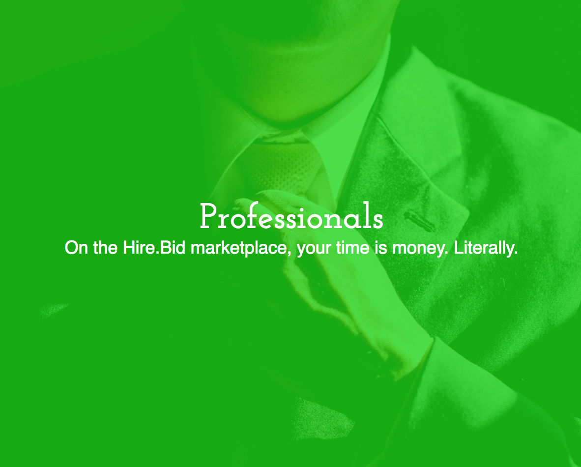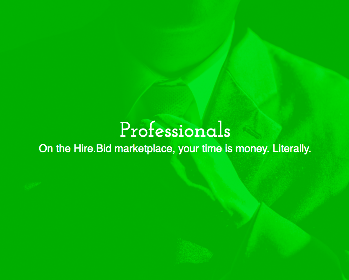 I'm the founder of Hire.Bid - we are excited to share our new marketplace with this great community! In a nutshell, Hire.Bid allows professionals to auction off their available time to be bid upon by prospective clients.