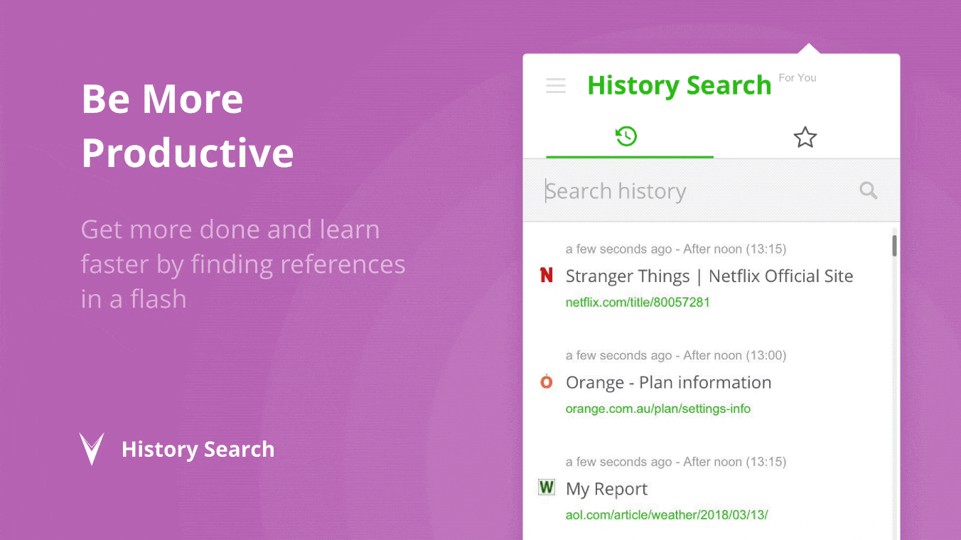 With History Search you’ll be able to retrieve articles, open online documents, find emails or any other webpage using a phrase, comment or topic you remember.