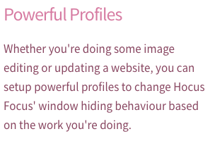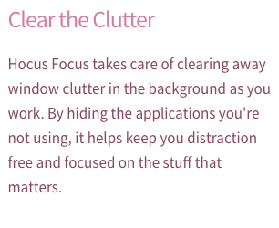Hey guys! I'm the developer behind Hocus Focus. The application's been around since 2011 under the name of Houdini, but was recently rewritten from the ground-up and relaunched as a modern Yosemite-friendly application.