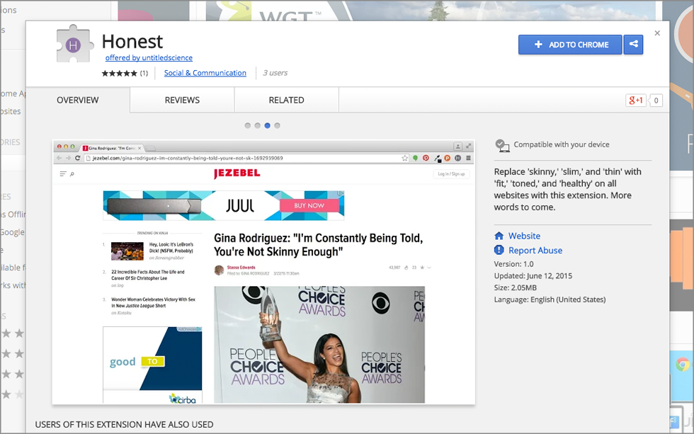 Chrome extension that replaces bodyshaming words on websites