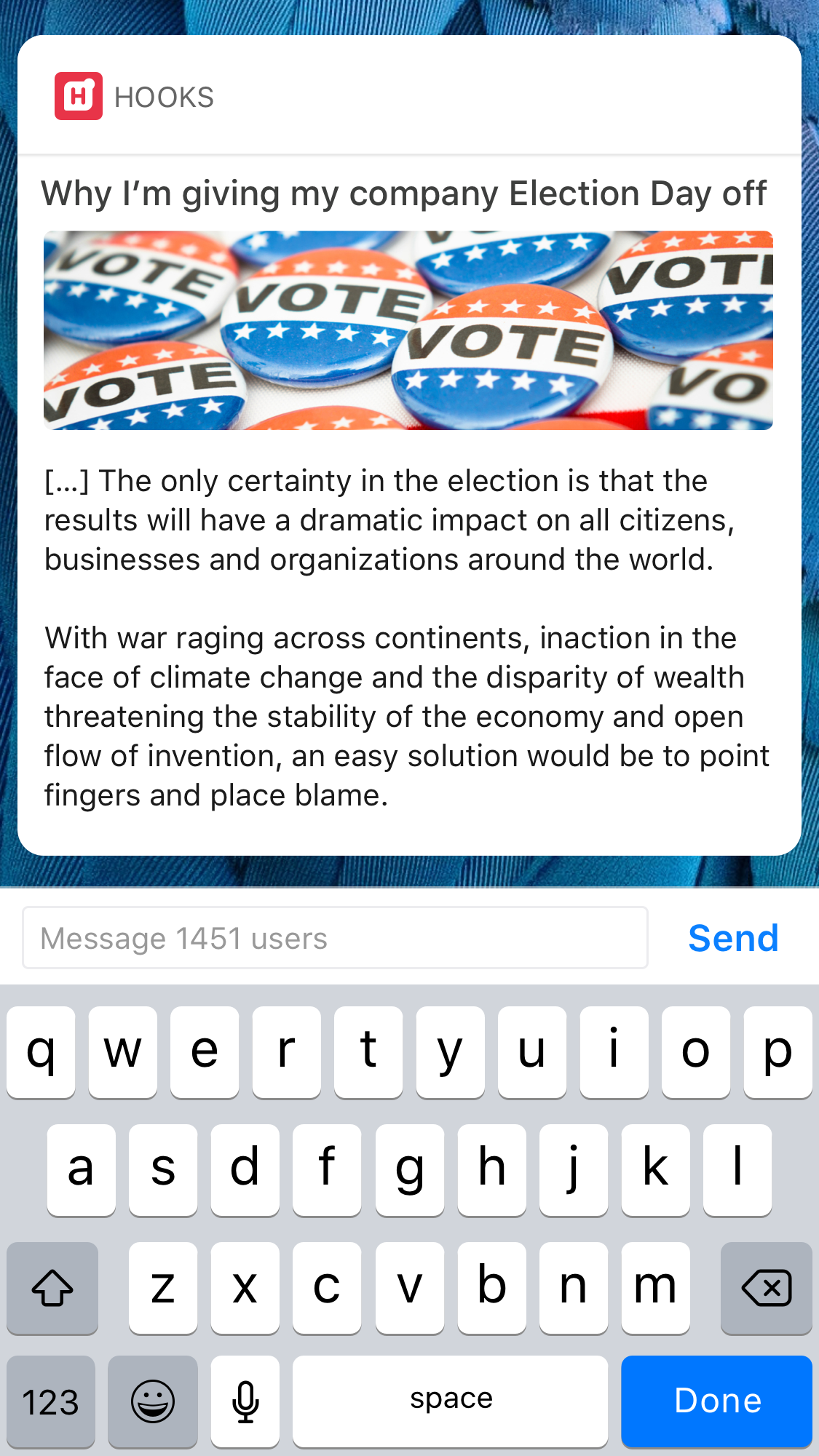 Hooks pivots and converts it's news app into a live conversations network, now users can join chat rooms about topics they love and Hooks will warm each conversation by sending a real-time updates about it.