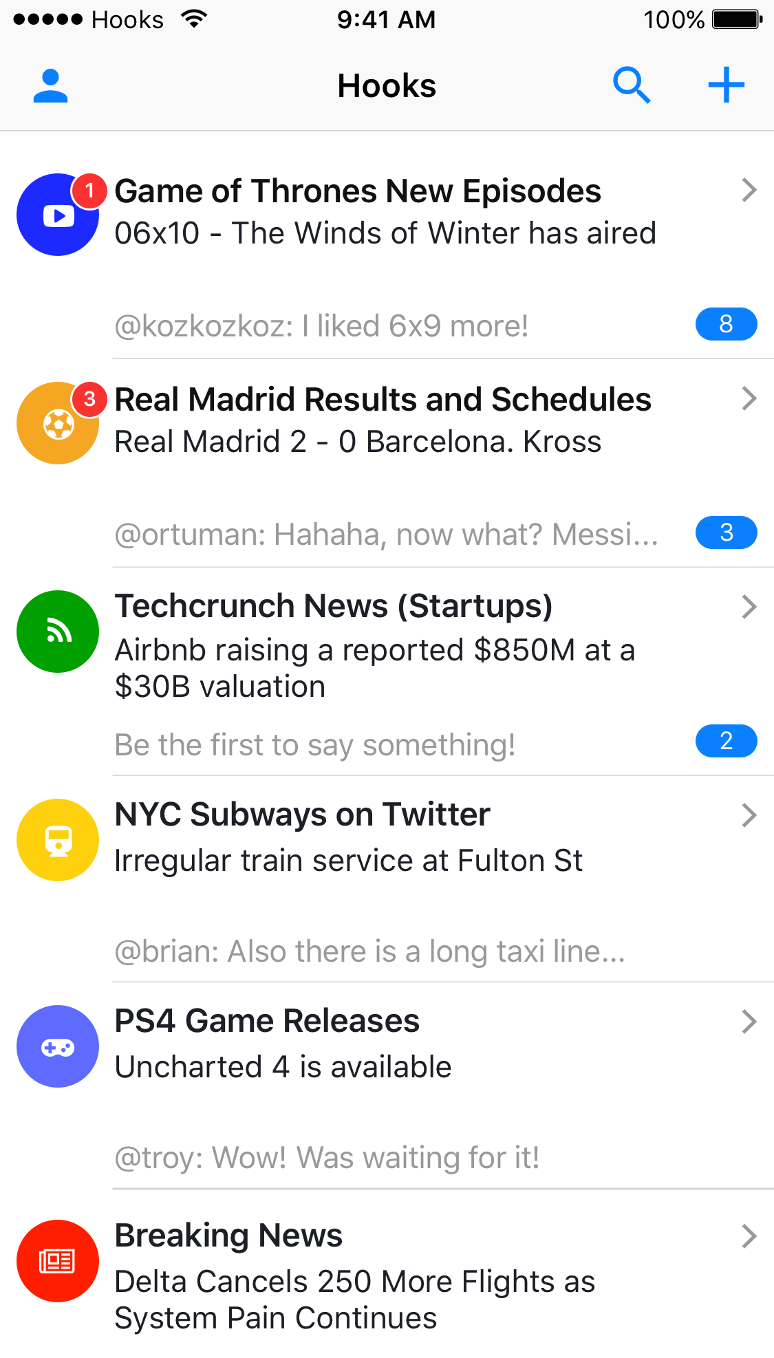 Hooks lets you stay up-to-date on anything throw push notification and chat live with awesome people who share the same interest as you at the exact sam… See more