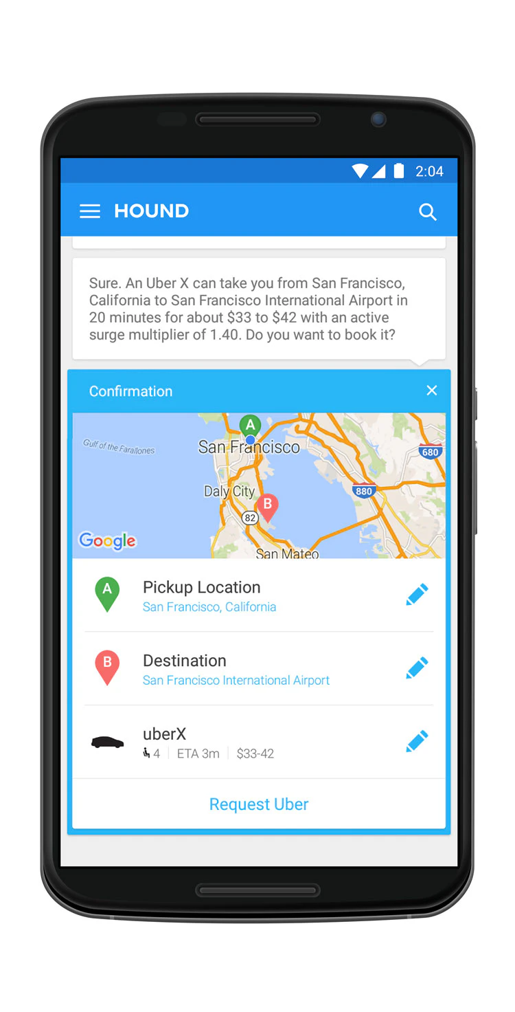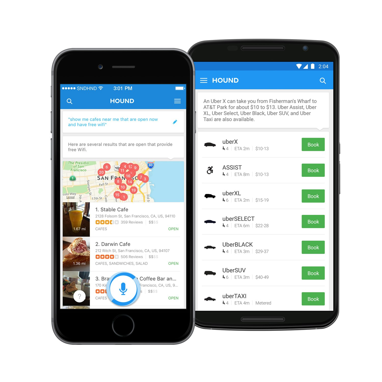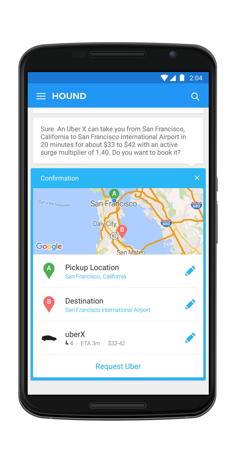 Hound is constantly improving and expanding with new data to provide more answers on a wider variety of search queries. In this launch, we’re also pleased to highlight partnerships with Uber and Yelp, enabling users to order an Uber car or access Yelp’s business listings by speaking to Hound naturally, as if they’re speaking to another person.
