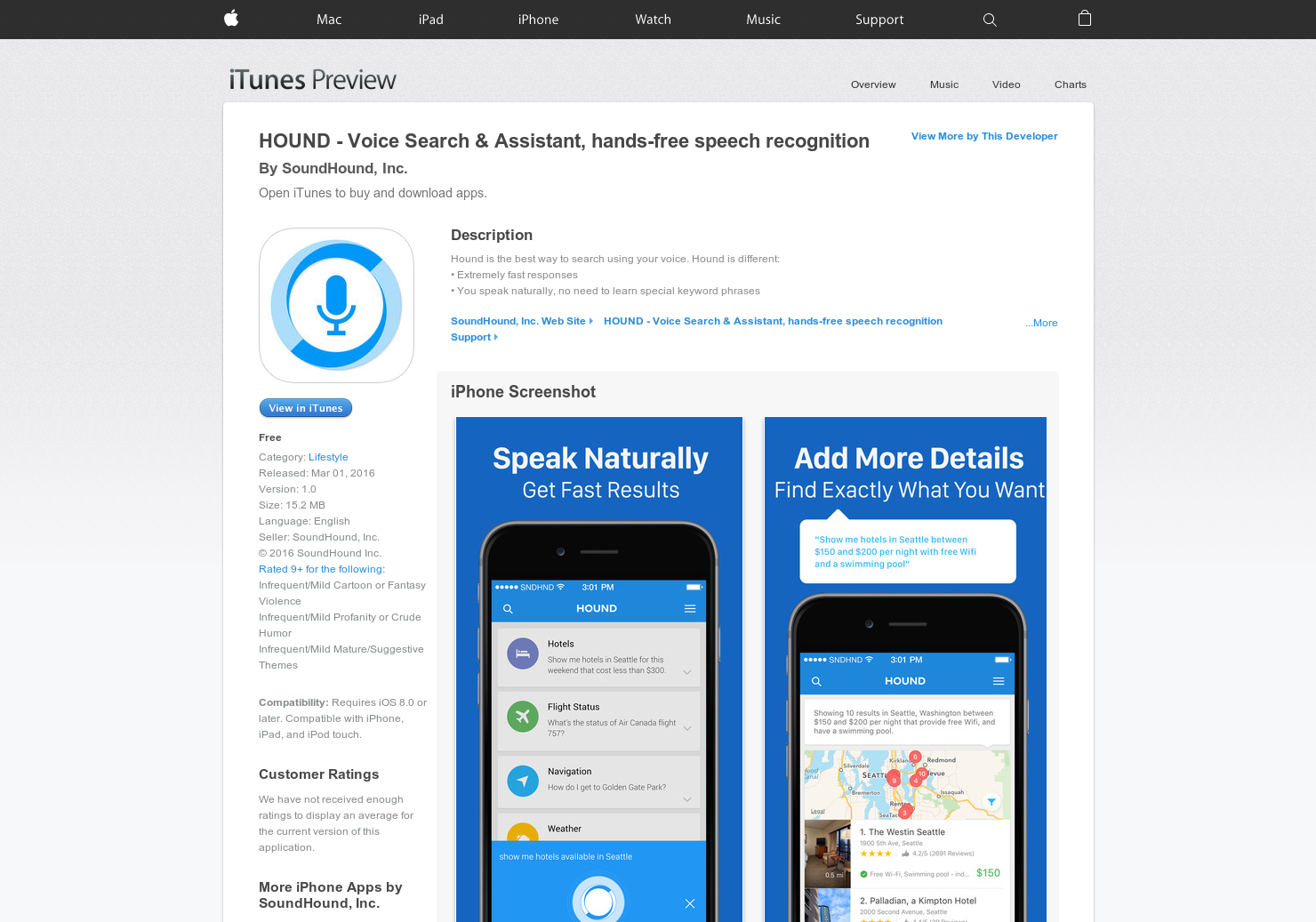 Maybe it's just me, but I can't seem to find the app on the Apple App Store. I know I can just click the 'Get It' link on this post but I like to actually search for apps just like a user would. When I search for 'Hound', I get a ton of SoundHound-like apps but I don't see this app.