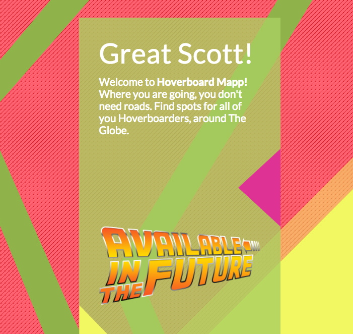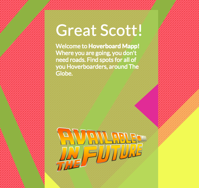 Since now is the day that Marty comes back to the future, we have prepared the app that will help him find locations to ride his hoverboard.