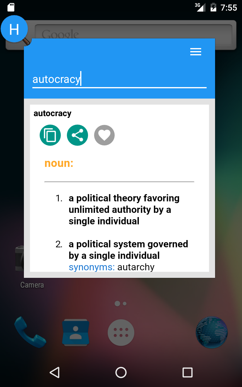 System-wide floating dictionary for android