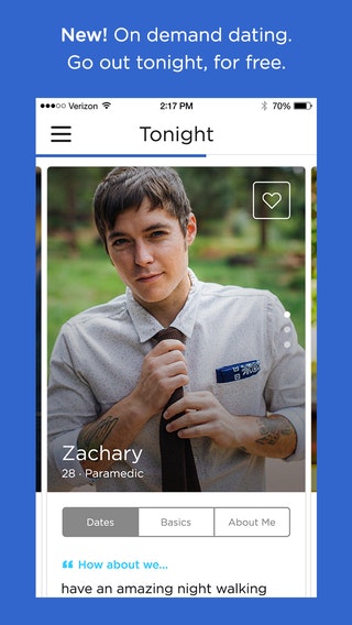 App has a bunch of new features, but the major update is one called "Tonight" that lets you order a date...on demand. I do think the language could be improved....maybe something better than "order" should be used.