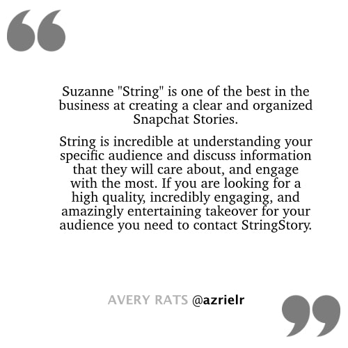 If you are not familiar with @stringstory on Snapchat, you should be.
