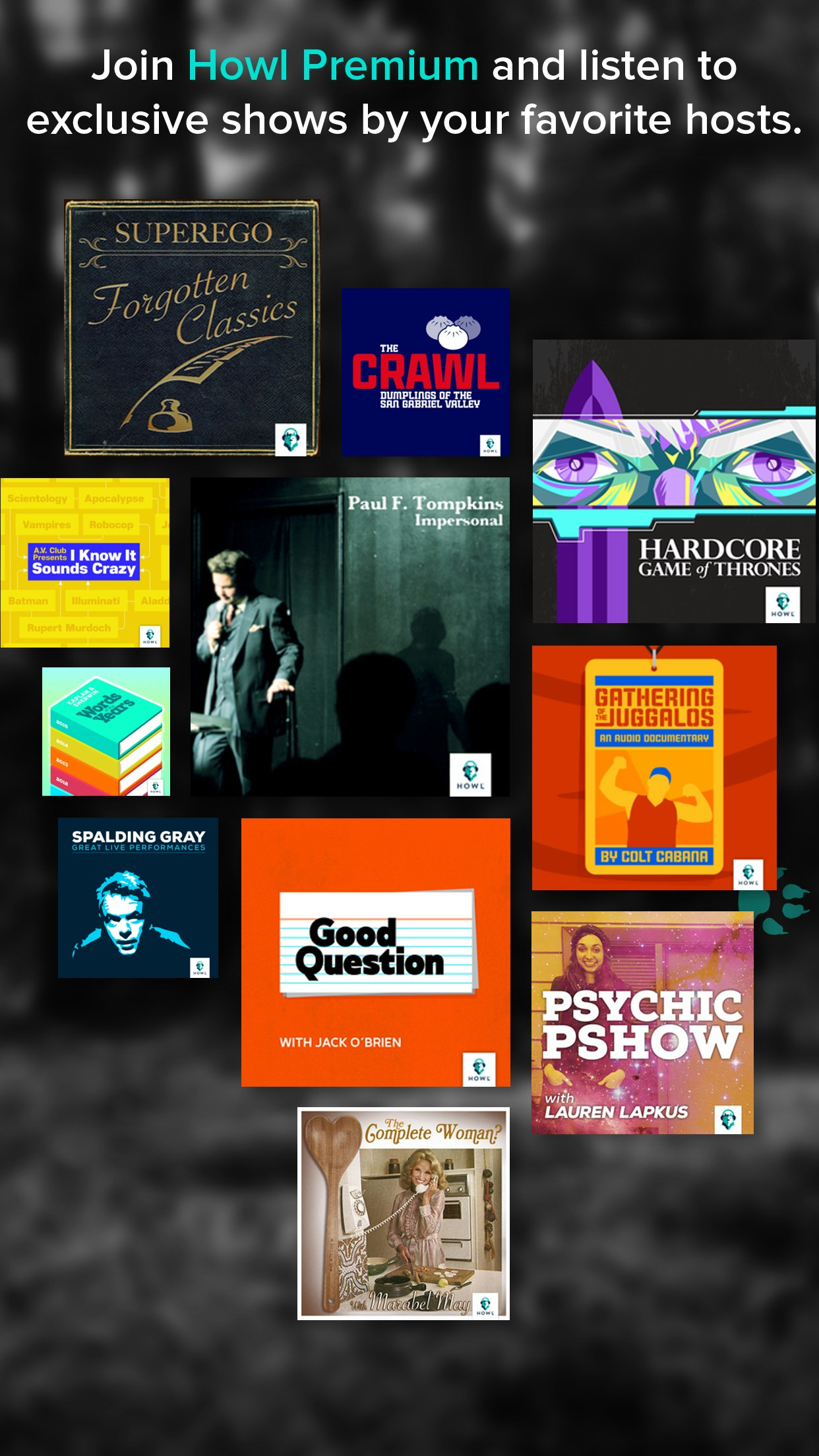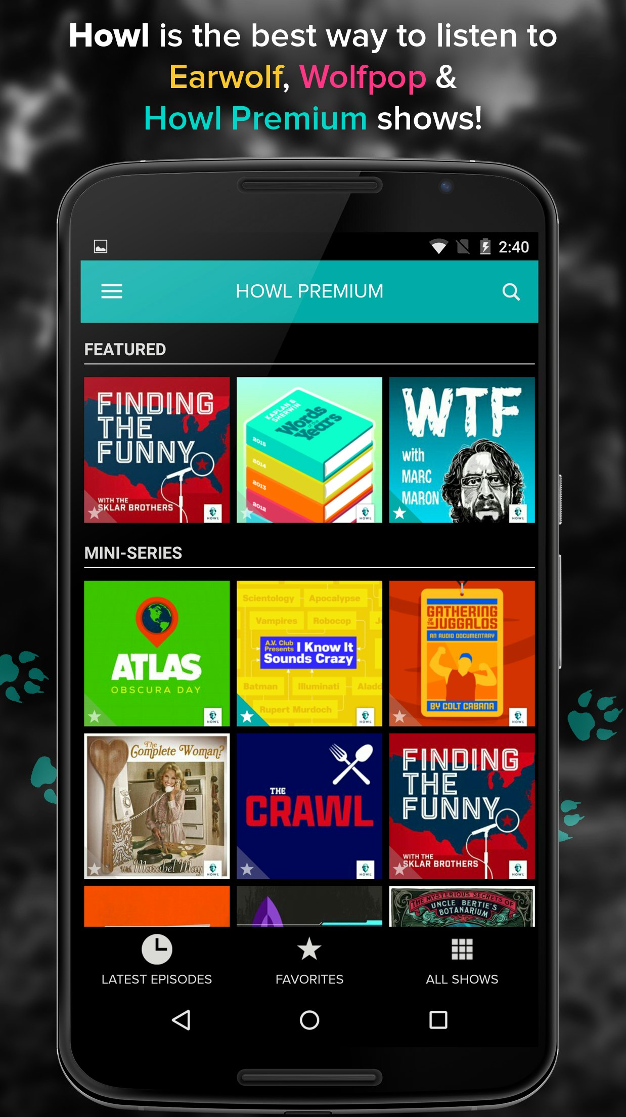 access to WTF, Earwolf, Wolfpop and Howl Premium podcasts