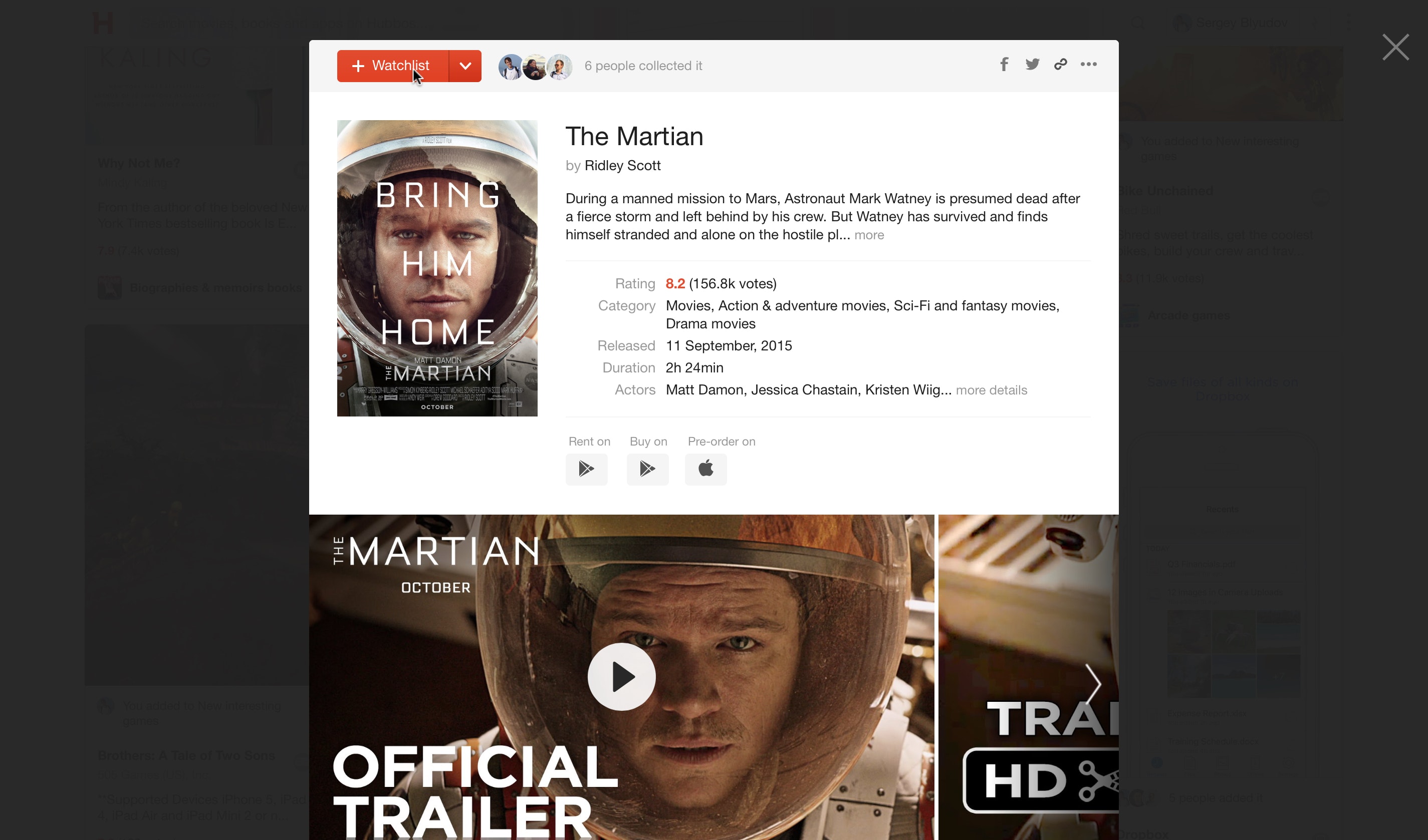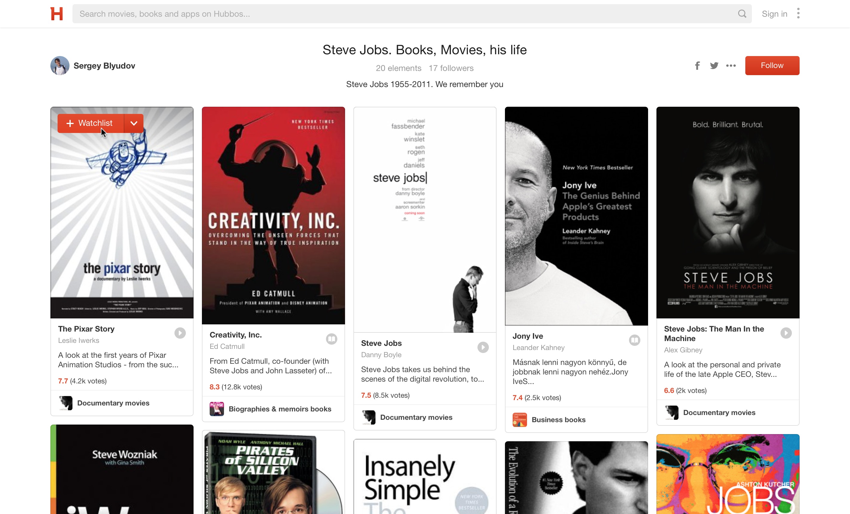 We are all looking for great movies, books, apps and games, but it’s still a painful process nowadays. Our goal is to bring the best experience to everyone who ever struggled like we did. We collected our greatest interests and came up with idea of the social platform, each of us would be happy to use as the best and only discovery tool in this sphere. Hubbo… See more