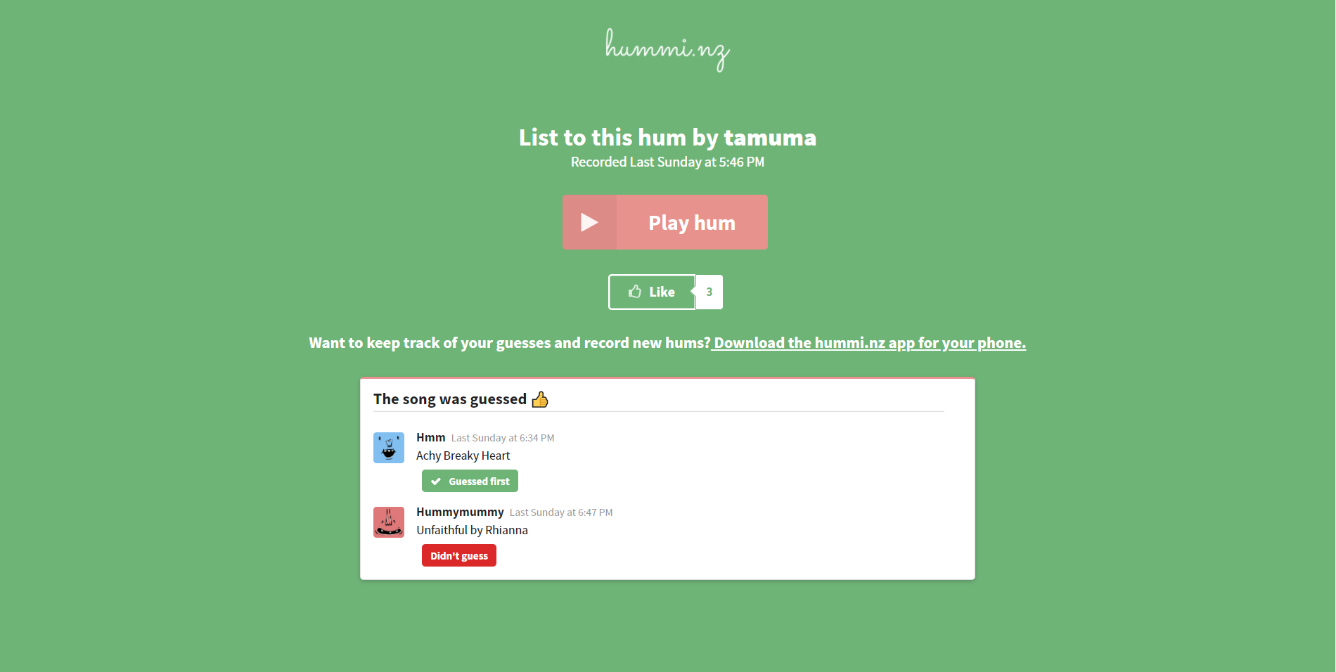 Hummi.nz is a mobile app that lets you record yourself while humming your favourite songs and then you can share this with the other users to see if they guess the song. You can always browse what other people hummed and try to guess the songs as well.