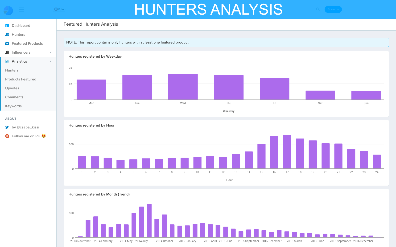 Hunter Analysis started as an idea to answer the question what can be done with PH API that's really useful and valuable.