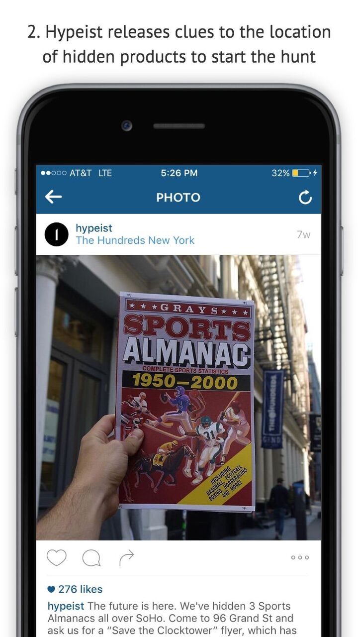 We launched in NYC a few months ago and have been running hunts through our Instagram account (instagram.com/hypeist). When a hunt drops, we release brand-relevant, location-based clues leading fans to hidden products.
