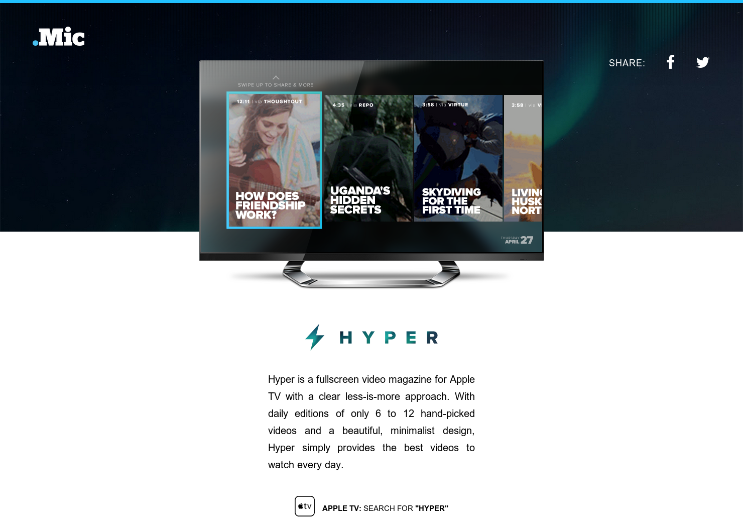 Mic, the Millennial-focused publication, acquired Hyper recently. Here's their first product launch within the new company.