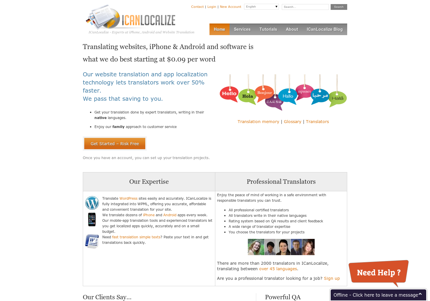 Translating websites, iPhone & Android and software