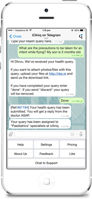 How about getting a second opinion for any of your health queries just like texting a friend ? And that too on an existing app? That's the whole idea behind iCliniq on telegram. Just add @icliniqbot and the bot will guide you.