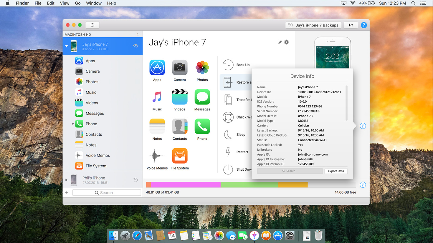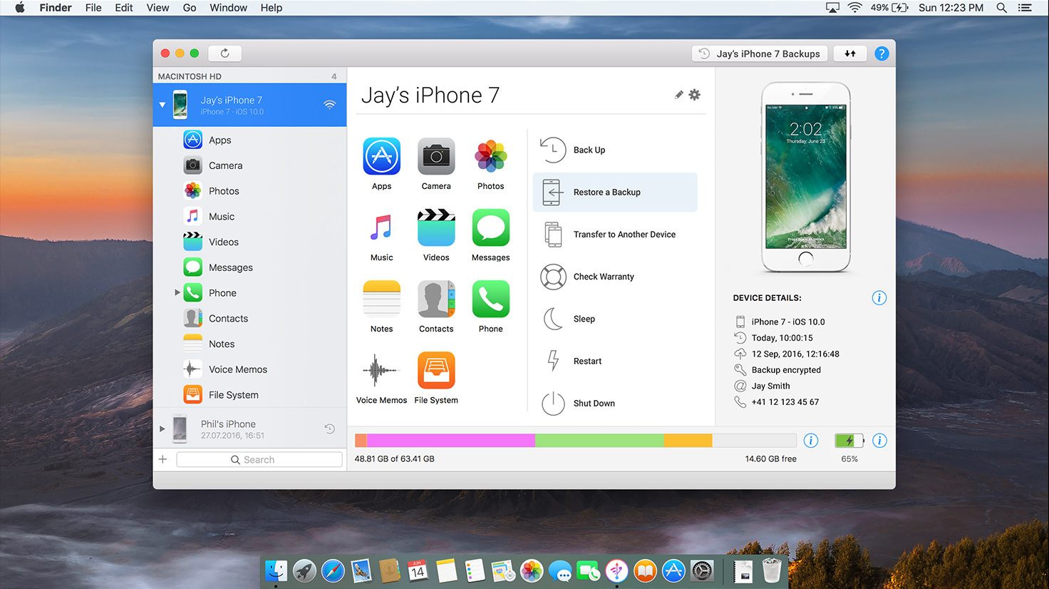 iOS 10 compliant app that helps you safely back up any iPhone, iPad or iPod touch or transfer and save your music, messages, files and data.