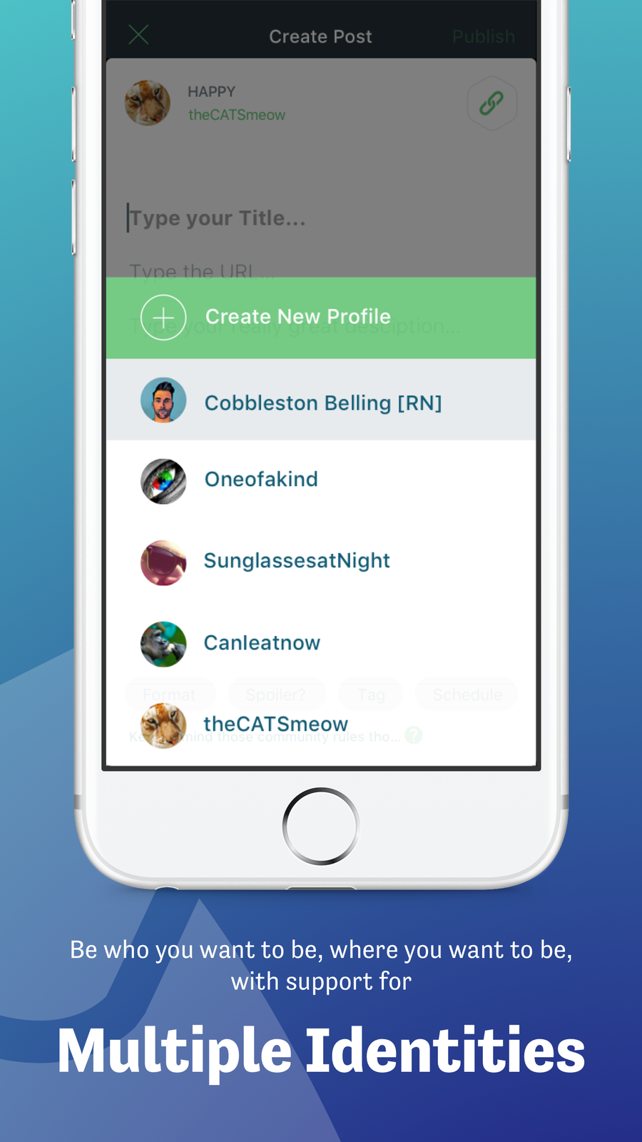 go imzy go! really love the platform, especially the ability to have multiple profiles under one account. want to be anonymous? go for it. real name? cool. fake gaming persona? awesome.