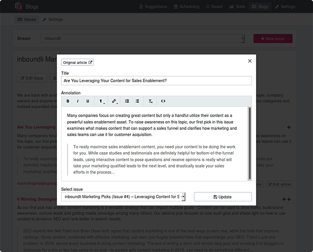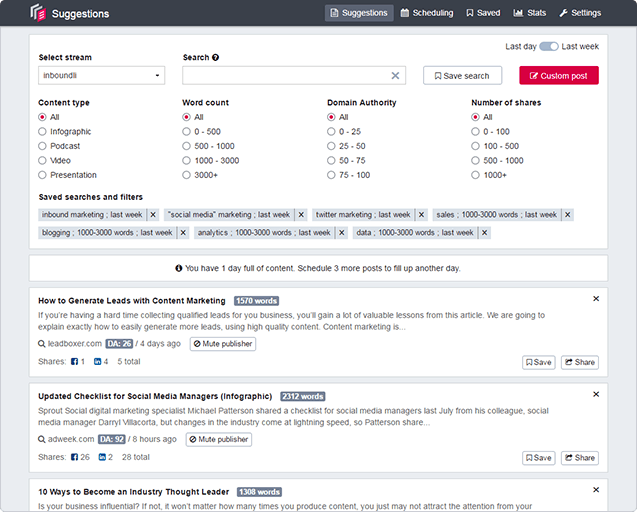 inboundli is a curation platform that automates content search, personalization and distribution. We use AI to help companies multiply content output on key marketing channels.