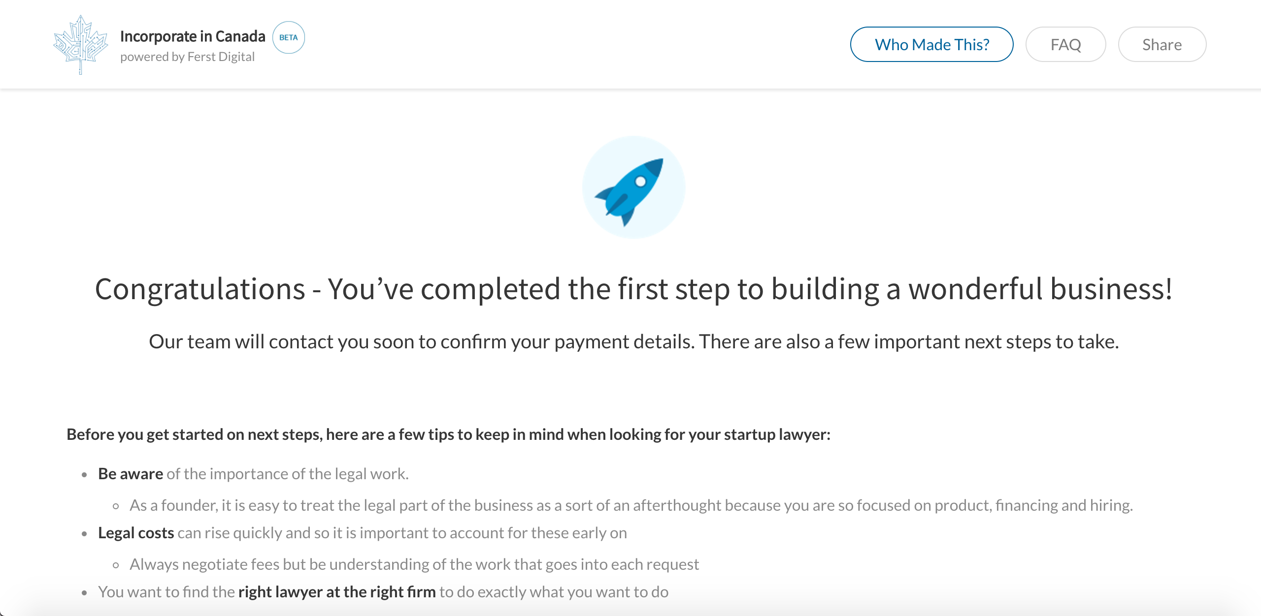 Having your service last year when we incorporated our company in Canada would have been great. 🇨🇦