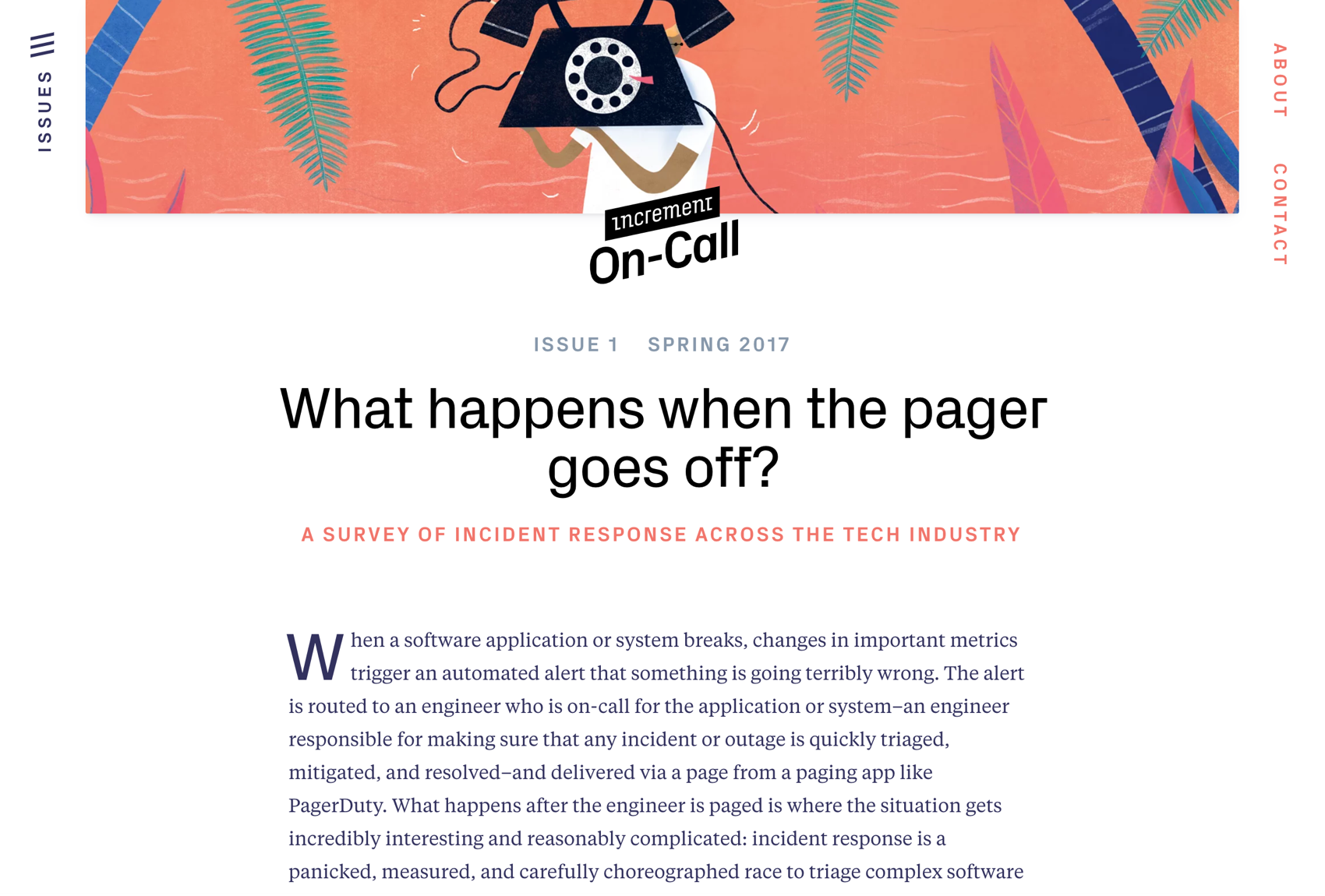 "We've decided to start Increment, a software engineering magazine dedicated to providing practical and useful insight into what effective teams are doing so that the rest of us can learn from them more quickly. We plan to focus on the ostensibly small things that are actually big things: testing, deployment, development tools, code review. Team practices ar… See more