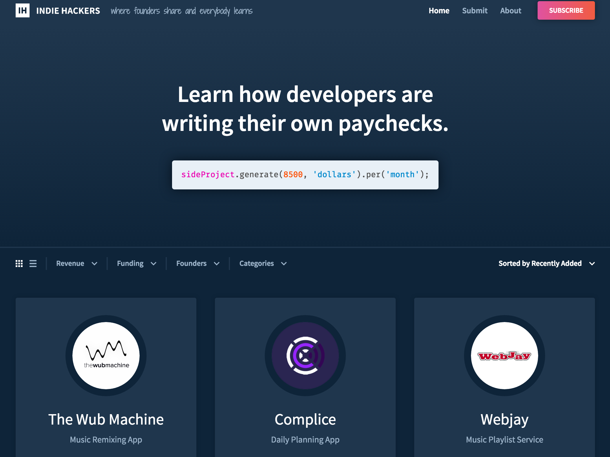 This is really cool. I actually saw it the other day when @levelsio shared his story. I really hope you maintain the transparency and curated element of the site as it makes for incredibly high quality content and a great read.