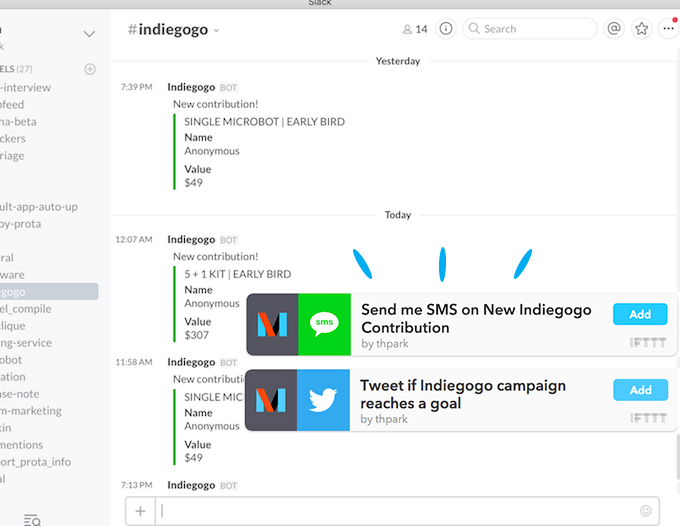 Indiegogo automation with IFTTT and Slack for fun and profit