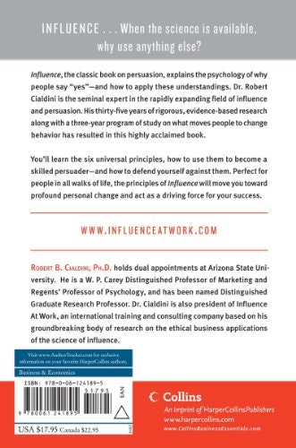 Breathless praise aside, Cialdini identifies key principles of persuasion such as social proof, reciprocity, subservience to authority figure… See more