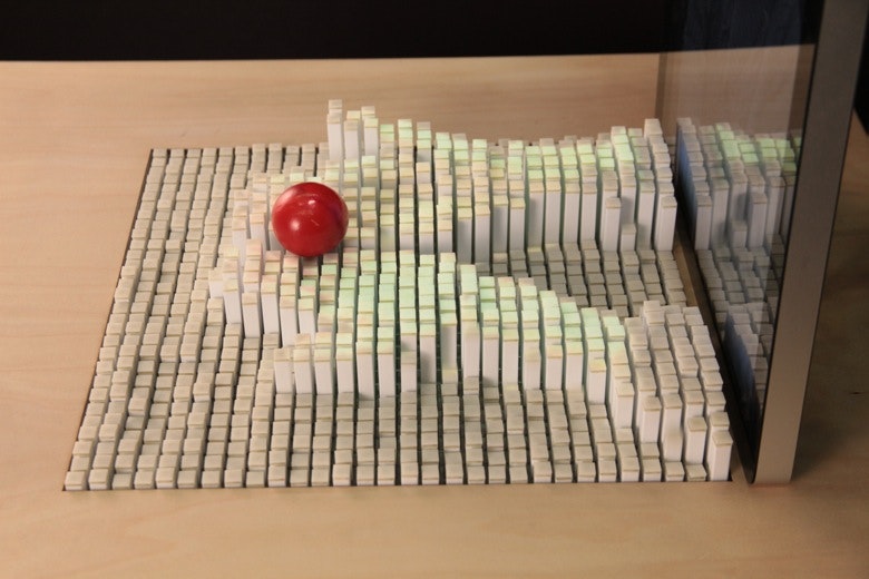 "inFORM is a Dynamic Shape Display that can render 3D content physically, so users can interact with digital information in a tangible way. inFORM can also interact with the physical world around it, for example moving objects on the table’s surface. Remote participants in a video conference can be displayed physic… See more