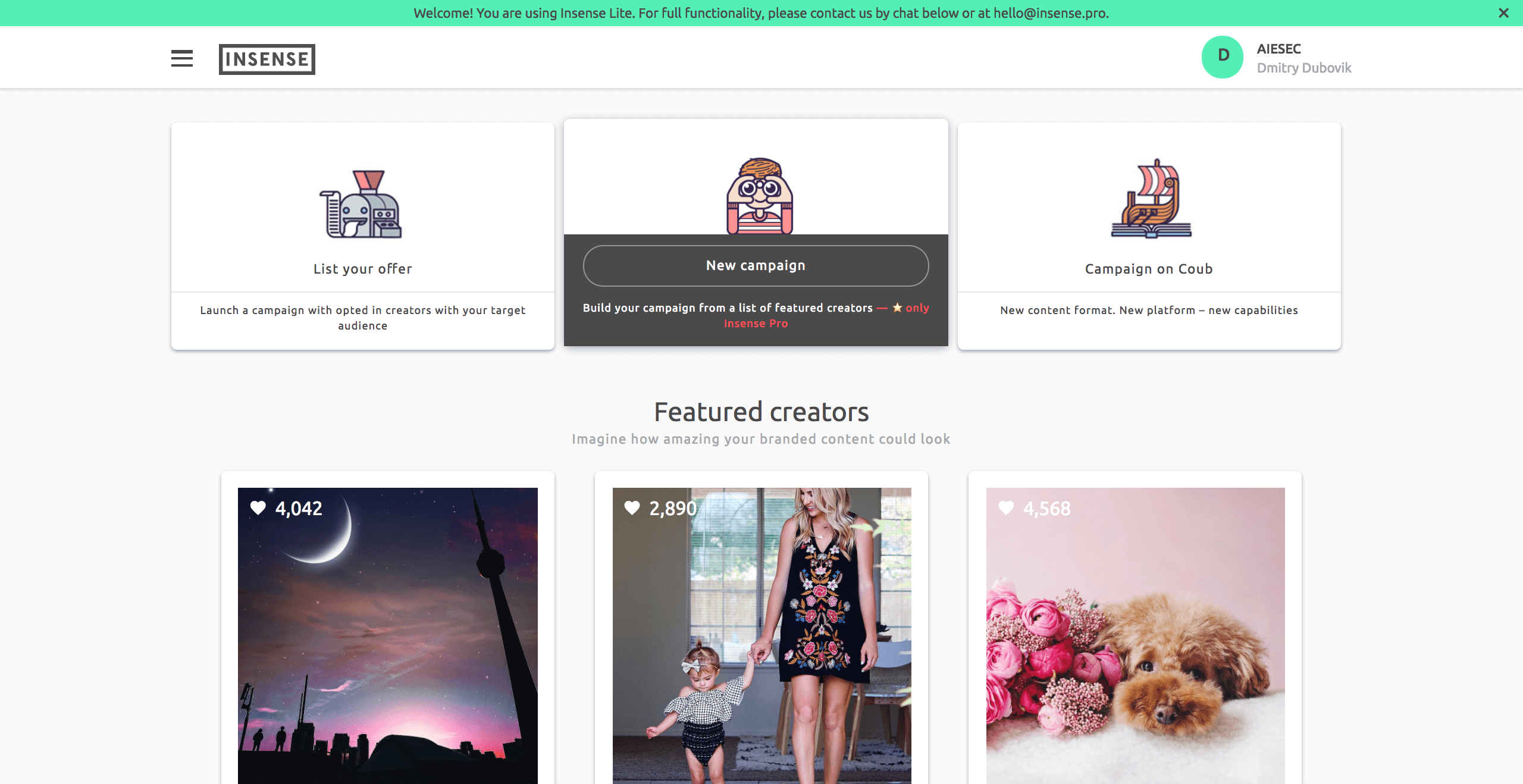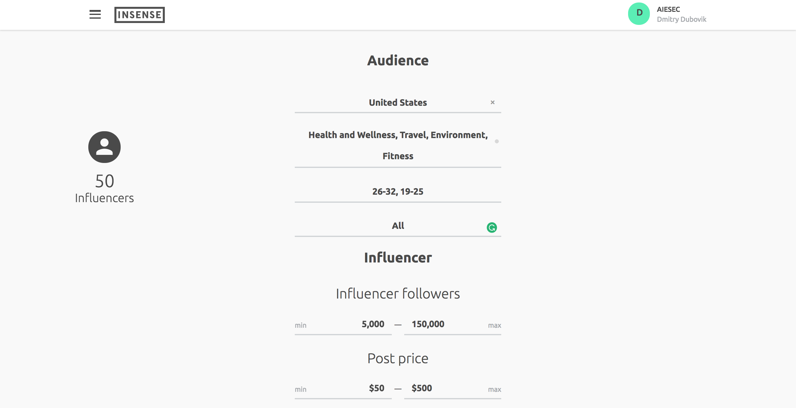 Insense helps you to find social influencers based on your target audience and reach them through scalable campaigns.
