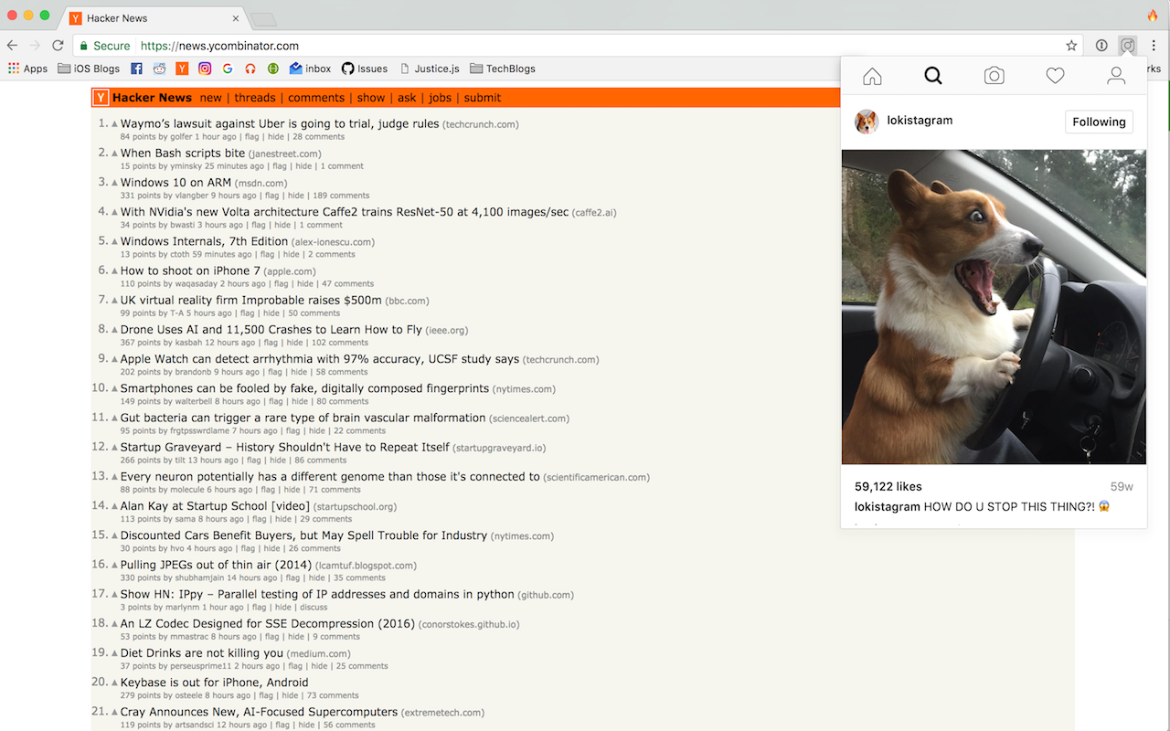 Hey friends! Since Instagram launched a new mobile website a few days ago, I decided to wrap it in a chrome extension. If you're addicted to Instagram like myself, check it out 🎉