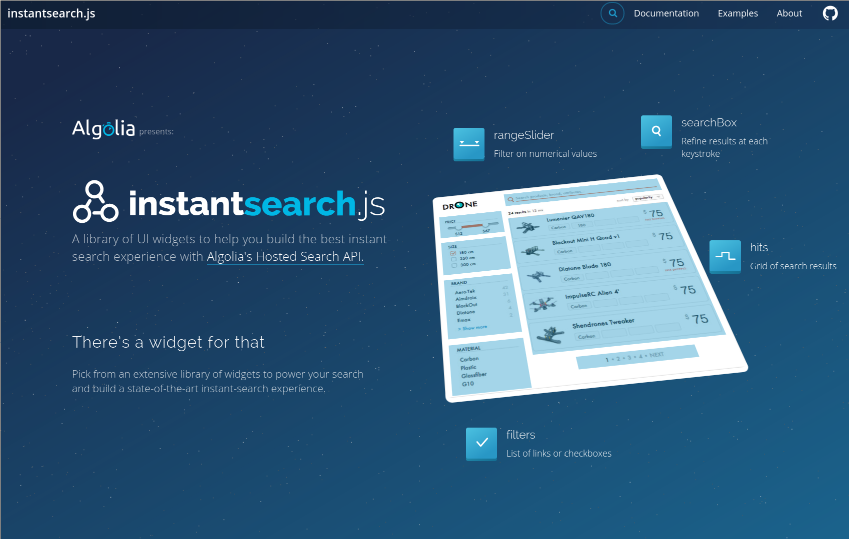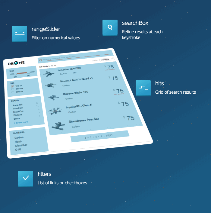 instantsearch.js is our new JavaScript library of UI widgets to help you build the best instant-search experience with Algolia’s hosted search API.
