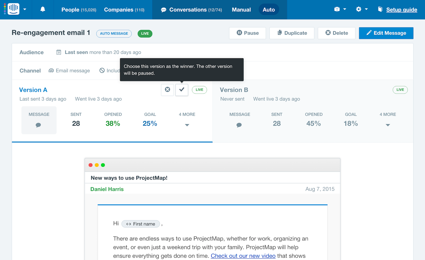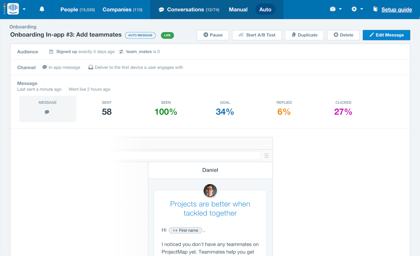 Wow, thanks Intercom! Continue to improve the analytics side of your product and you are gonna be the only tool needed for direct customer acquisition and retention.