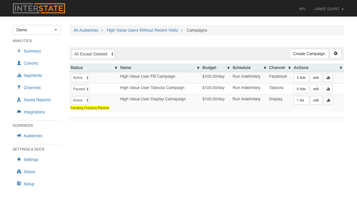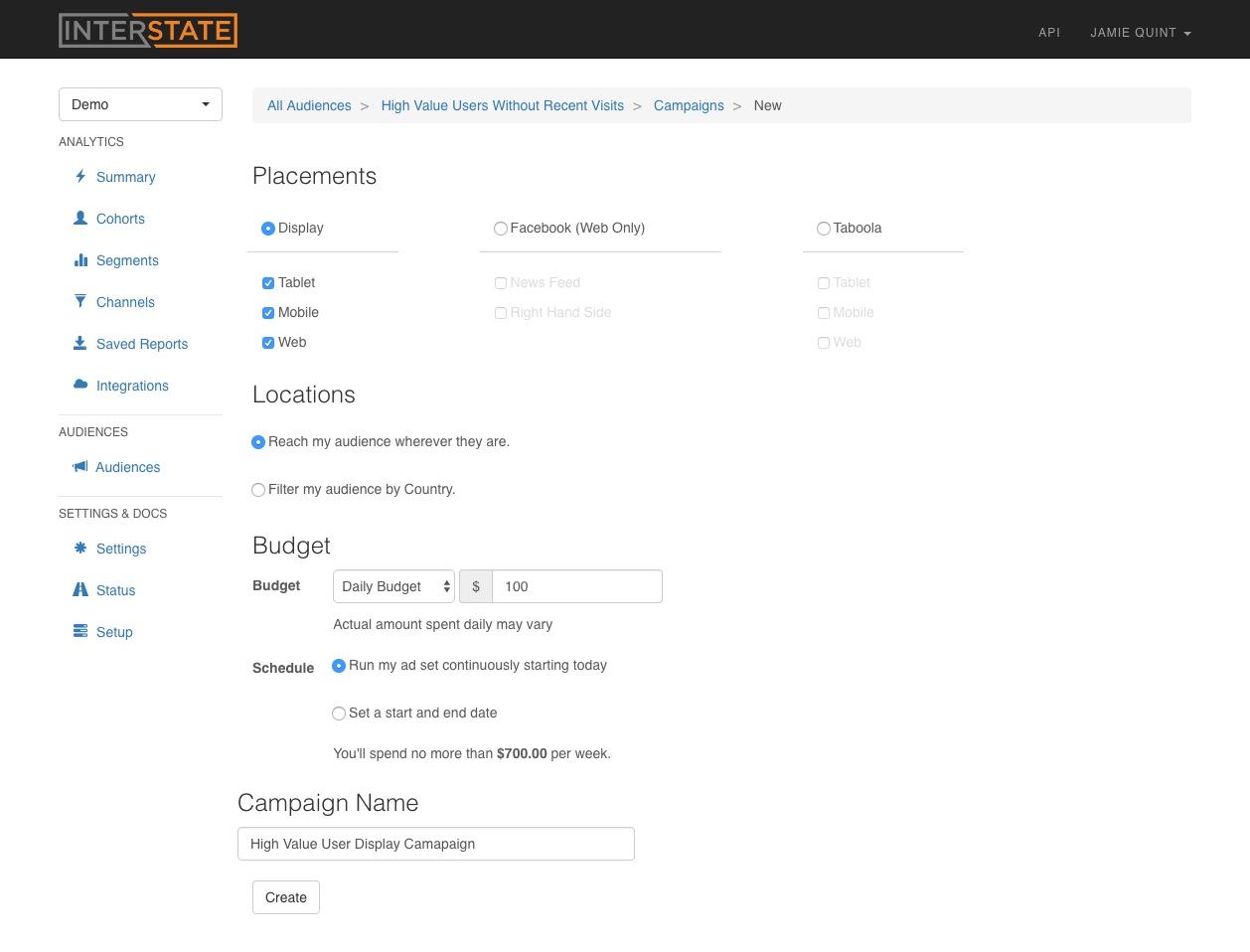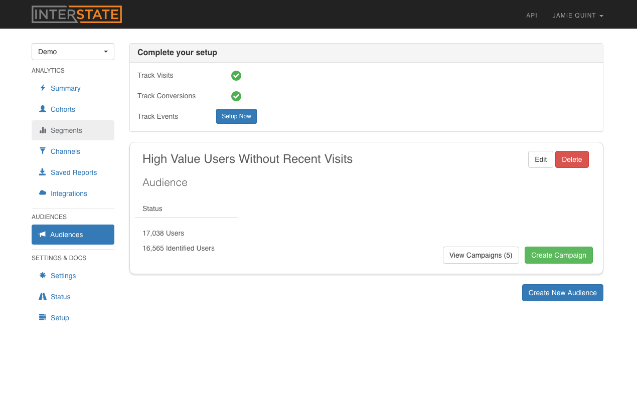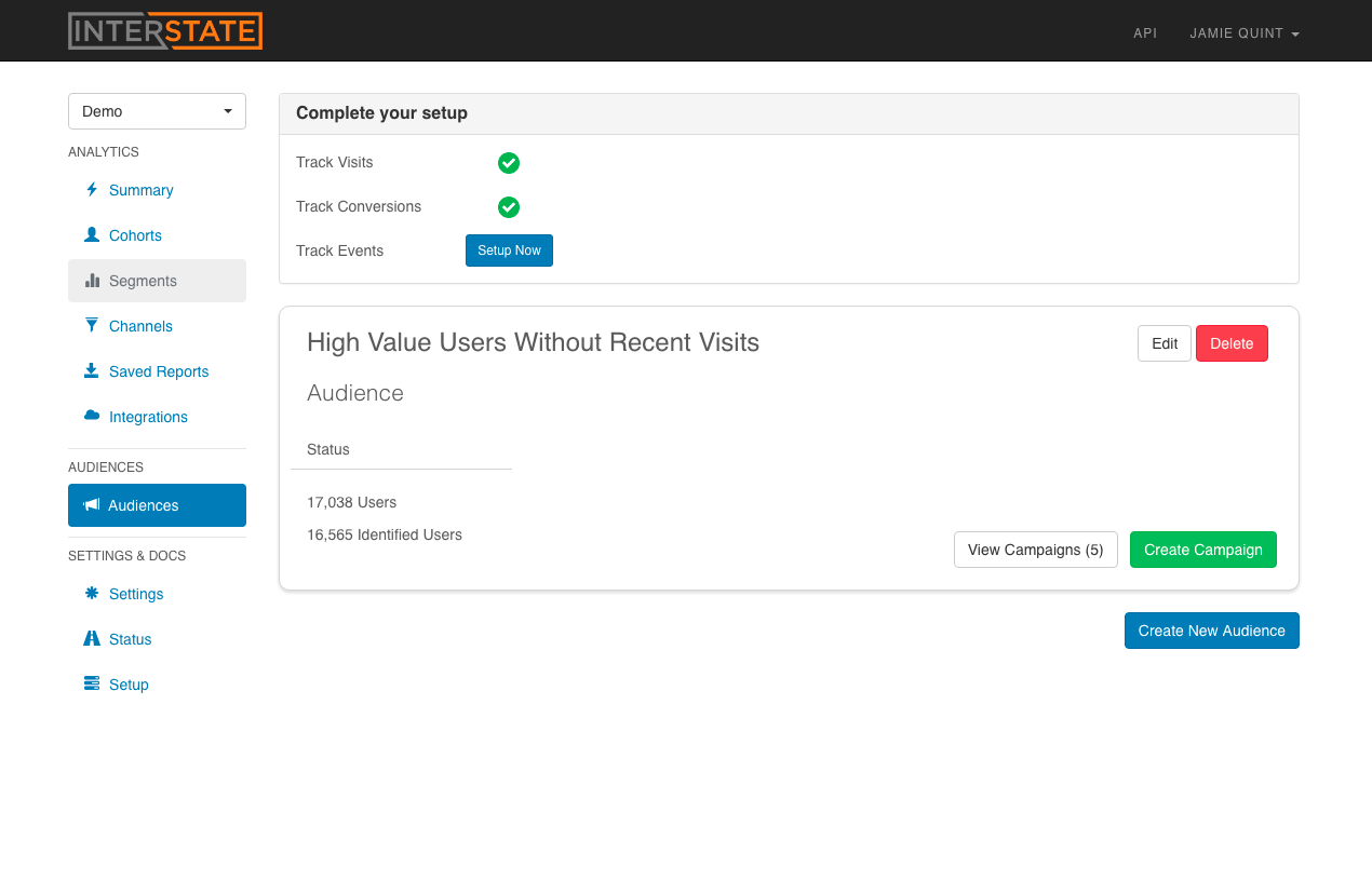 We built Interstate Audiences because re-engaging your customers is hard. You pay good money to acquire folks, but getting them to come back is a pain.