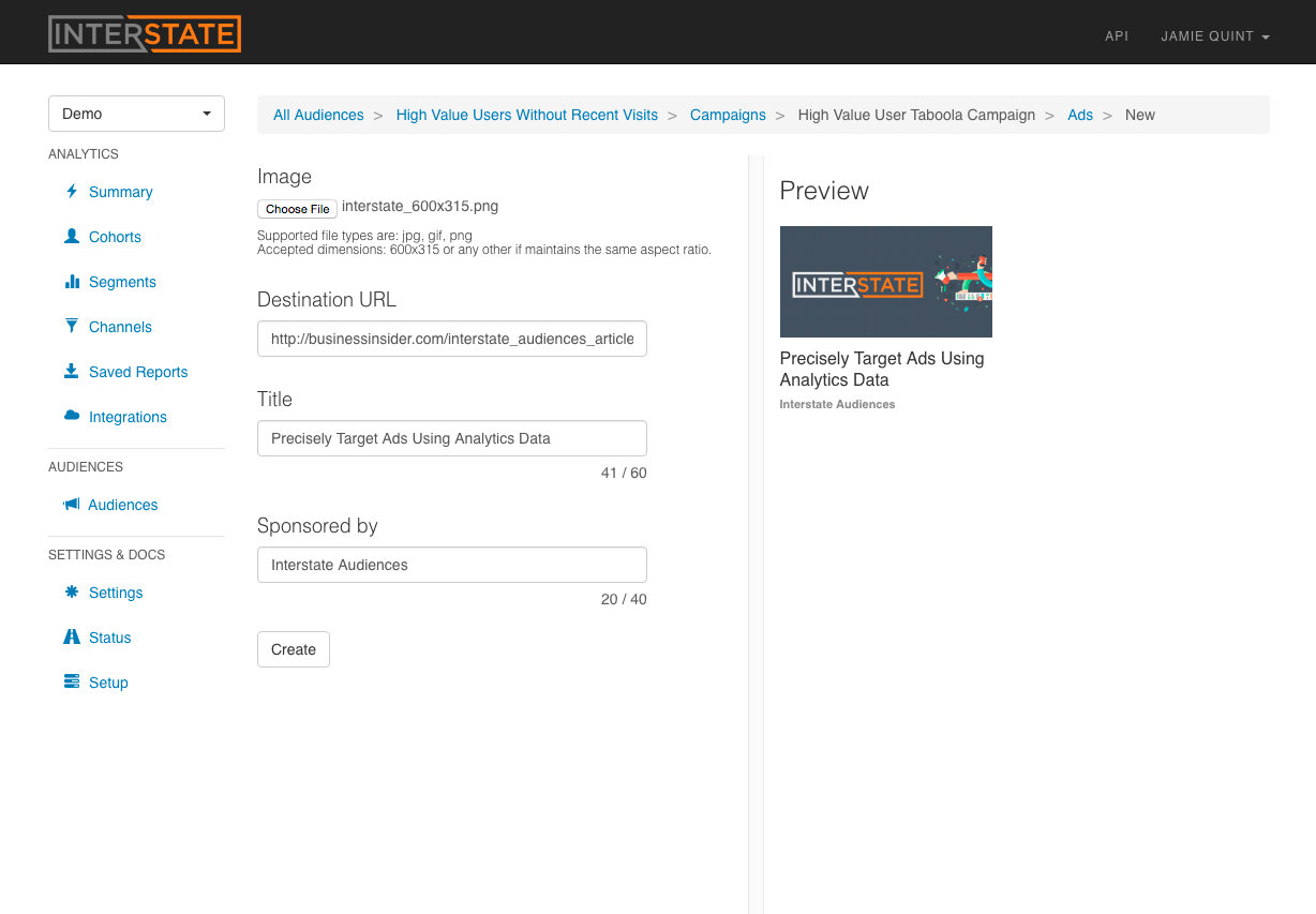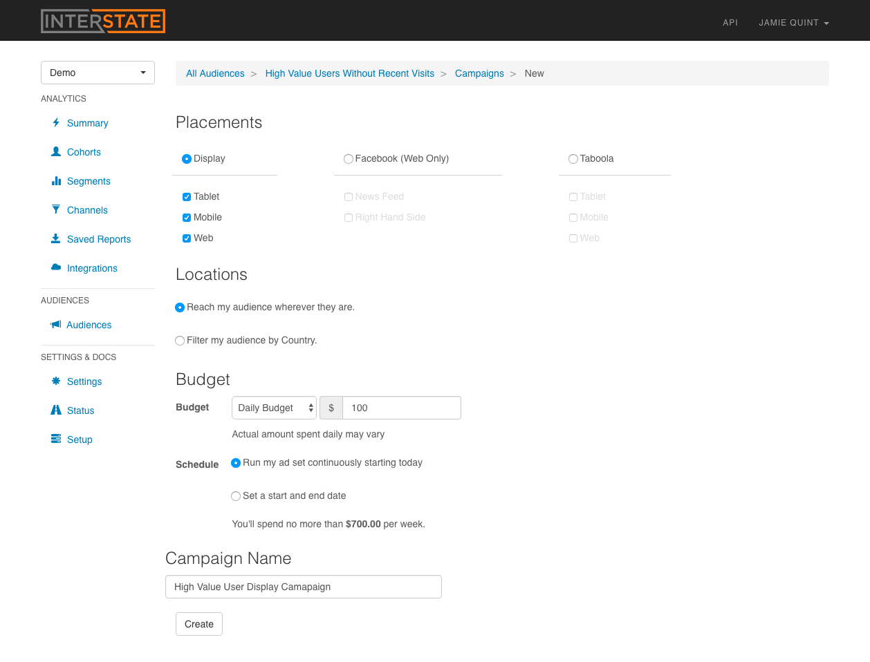 We've been using Interstate Analytics for a little while, and have set up remarketing for both FB and Adwords. I'm excited to take this new Audience product a spin