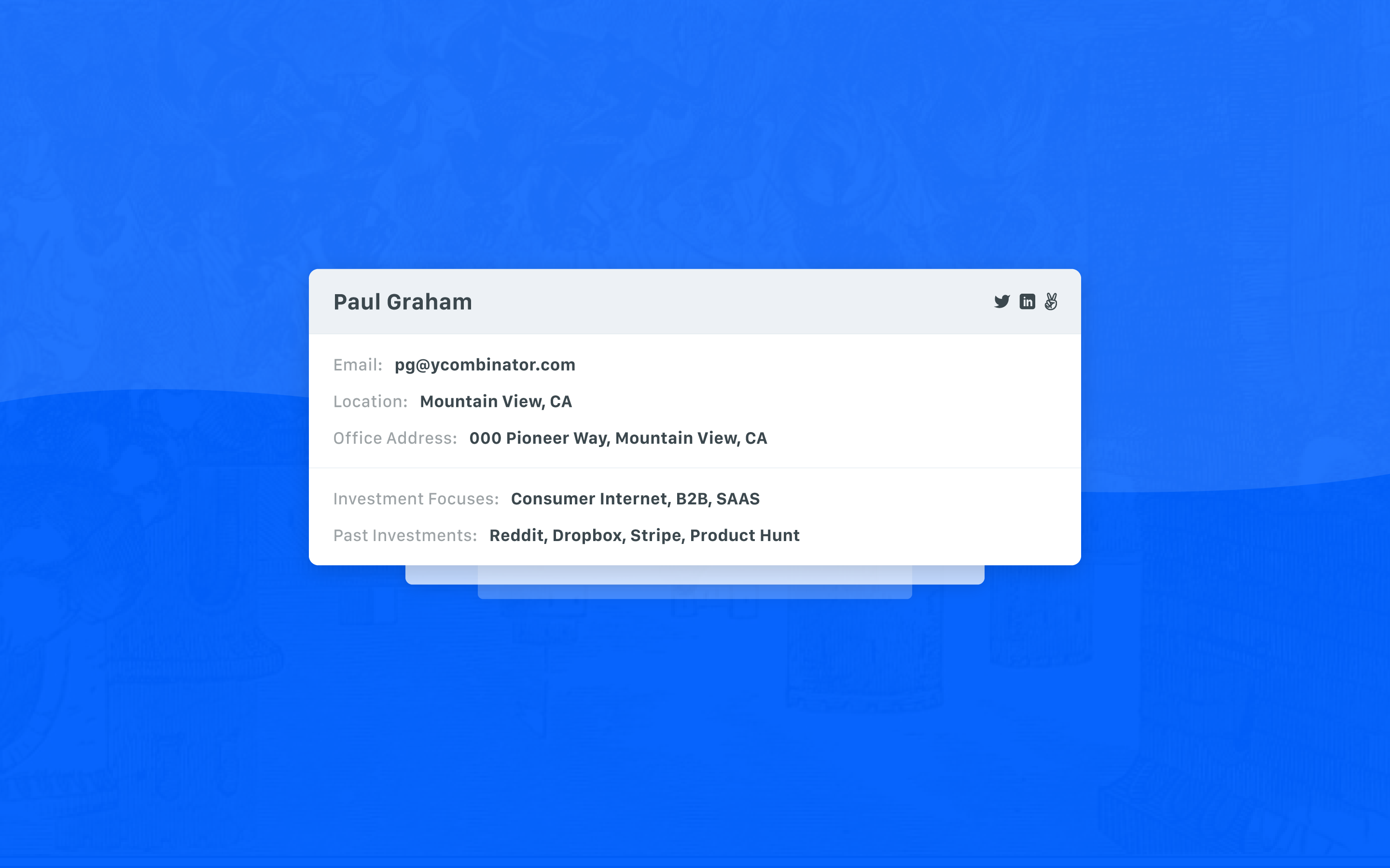 Figuring out which investors are likely to be interested in your project and how to get in direct contact with them is a nightmare. All this data is spread out, and finding it pushes you down a rabbit hole of AngelList, personal websites, Crunchbase, and VC fund portfolio pages. All this can take hundreds of hours of research––hours you could be using to *actually* close rounds.