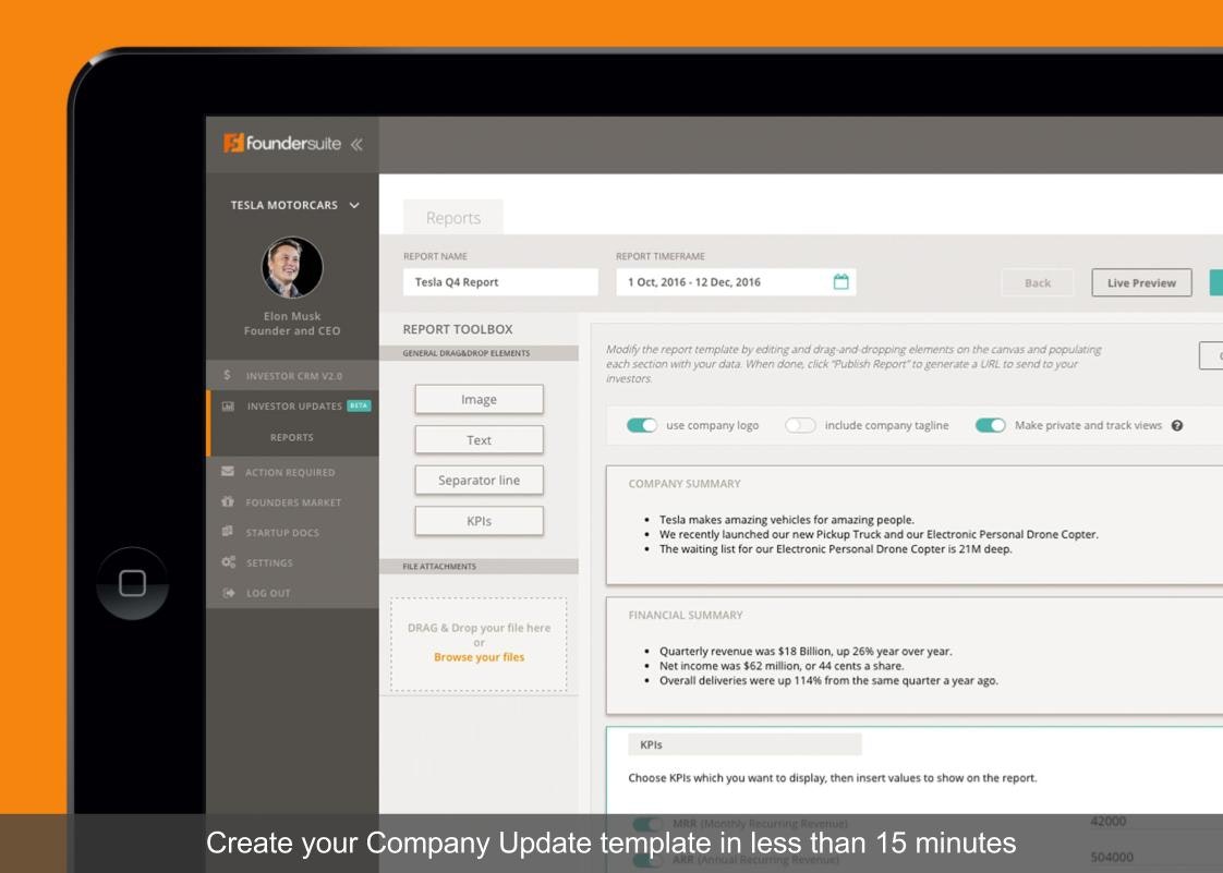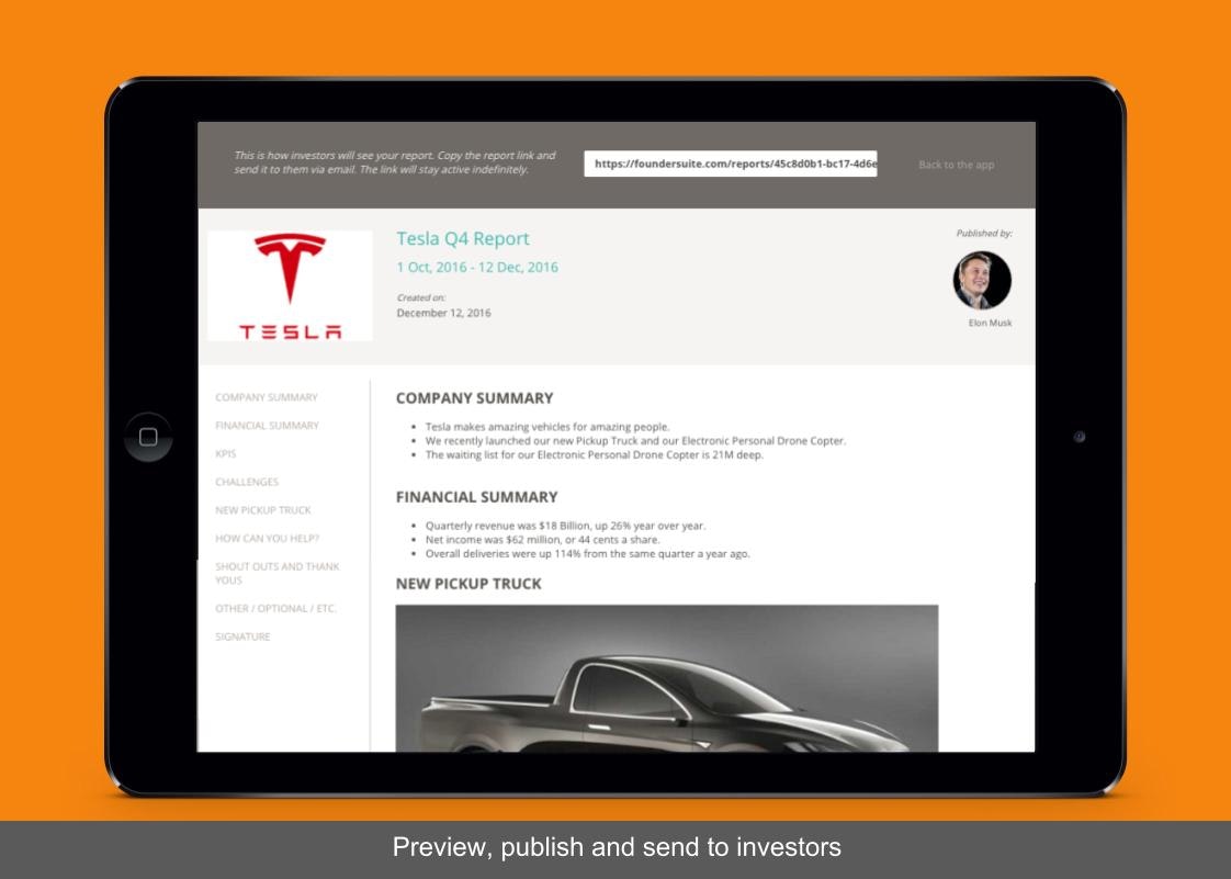 Investor Updater helps founders create beautiful progress reports to send to investors.