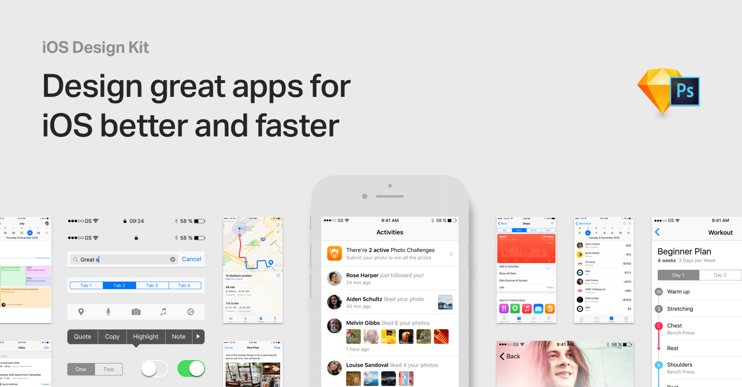 Proud to introduce you iOS Design Kit – library of app templates and iOS UI elements are combined into high-quality source files for Sketch and Adobe Photoshop.