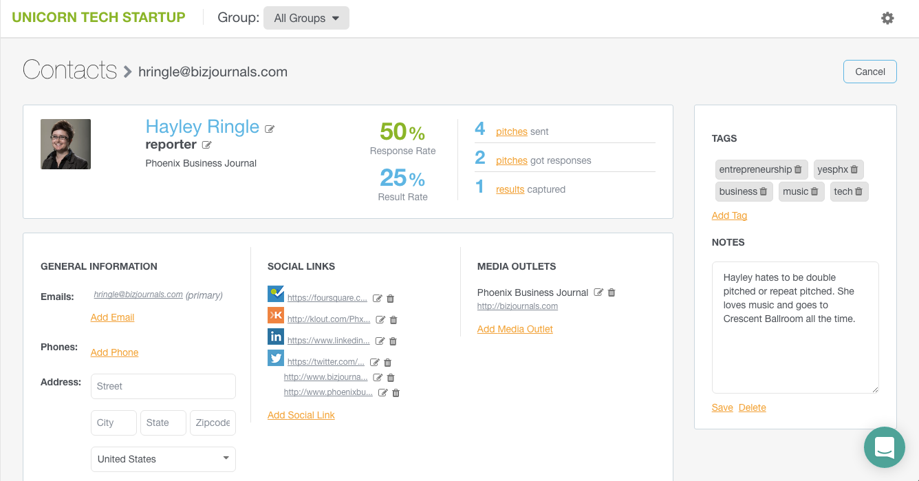I couldn't say more about this software. It helps me keep my team accountable and organized. It takes so many stresses out of the picture: Who have we've pitched? What were the results? How successful are our campaigns? We've scaled our agency and increased retainers based on the data that we are able to evaluate from Iris. No joke.