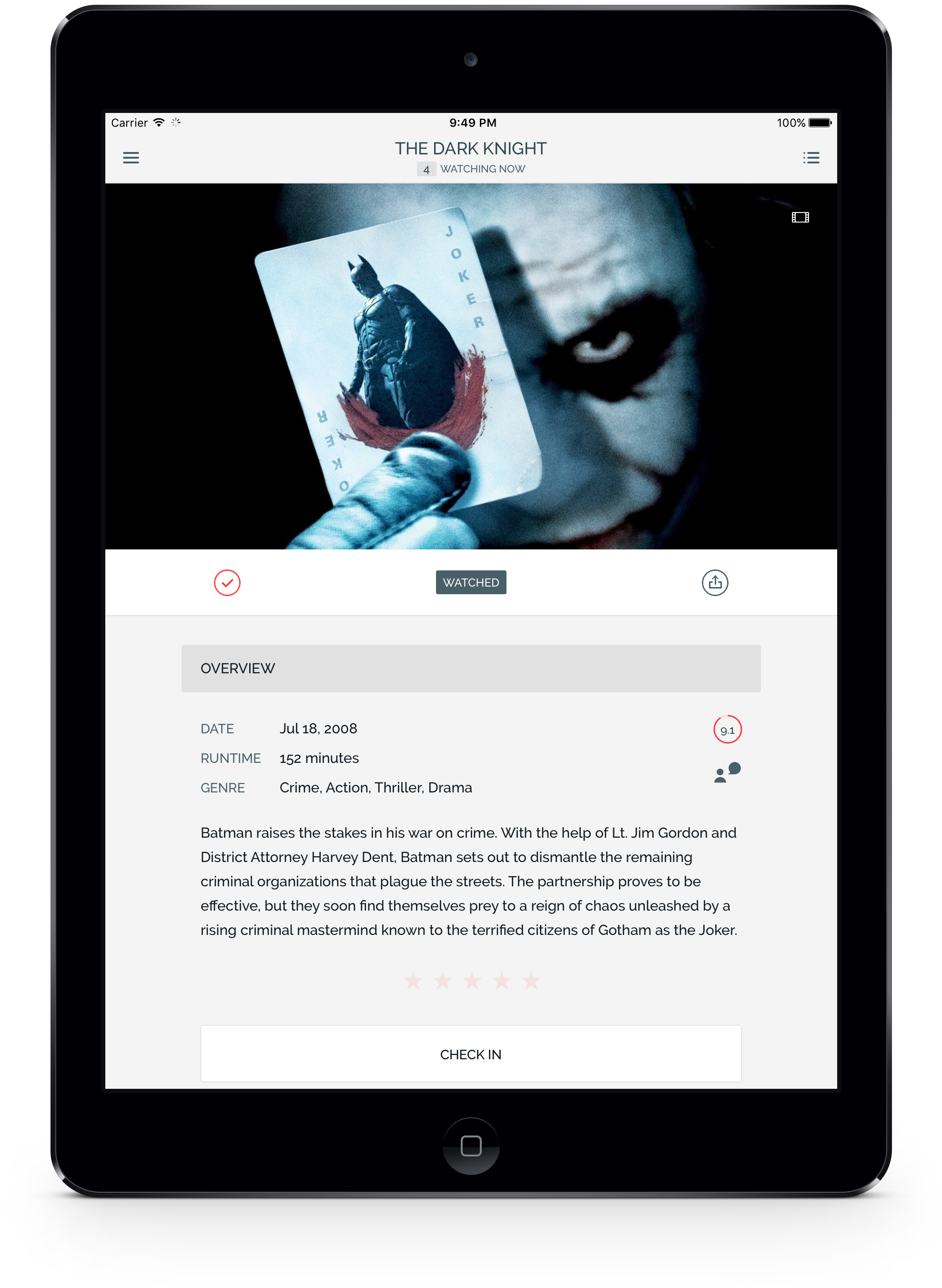 iShows Movies is pretty similar to iShows TV (http://ishowsapp.com/tv/)... The idea was to bring the same great TV track experience to the Movies world in a way that every user, new or recurring one, will enjoy it.