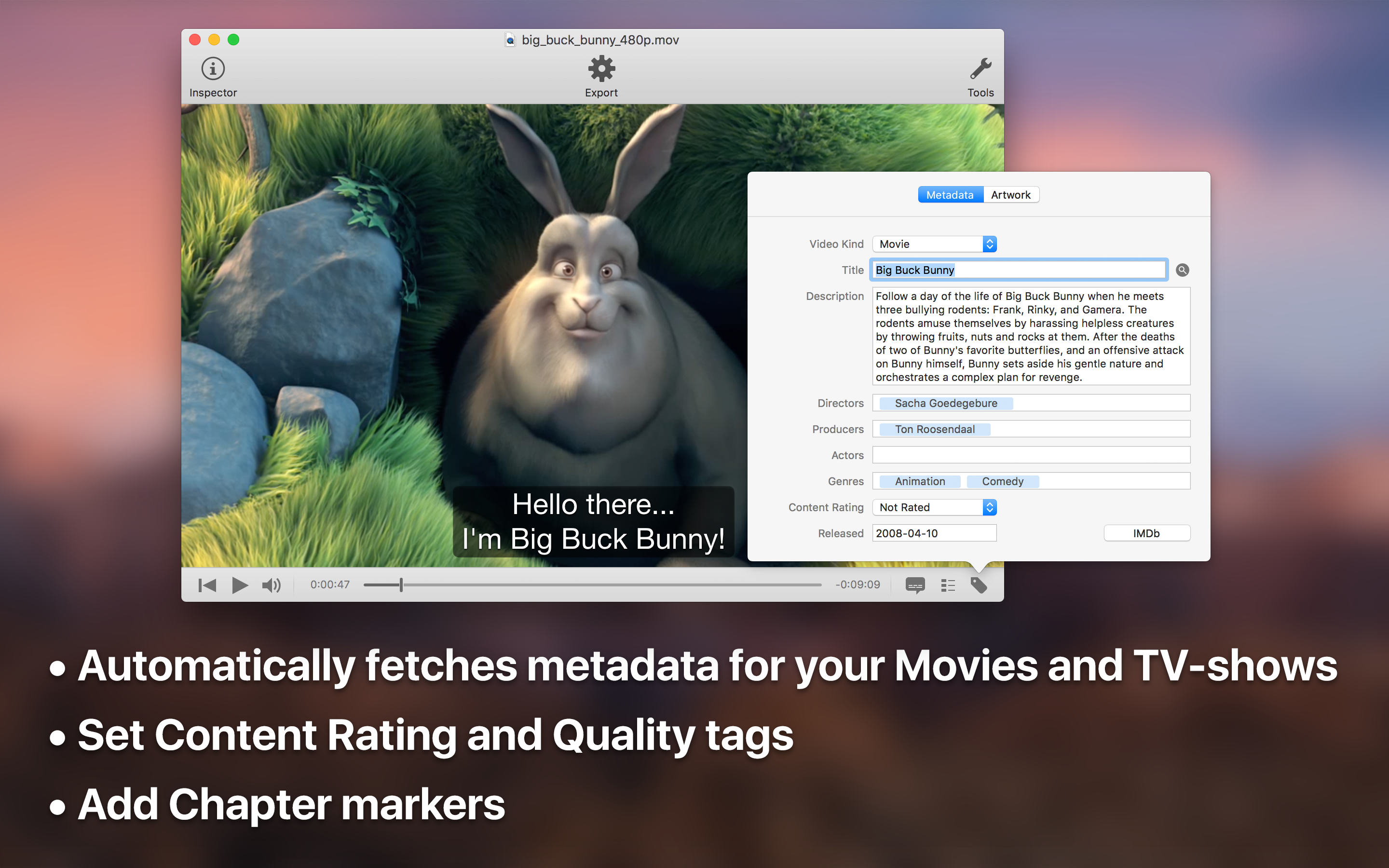 Soft subtitled movies with metadata for your Apple gear.