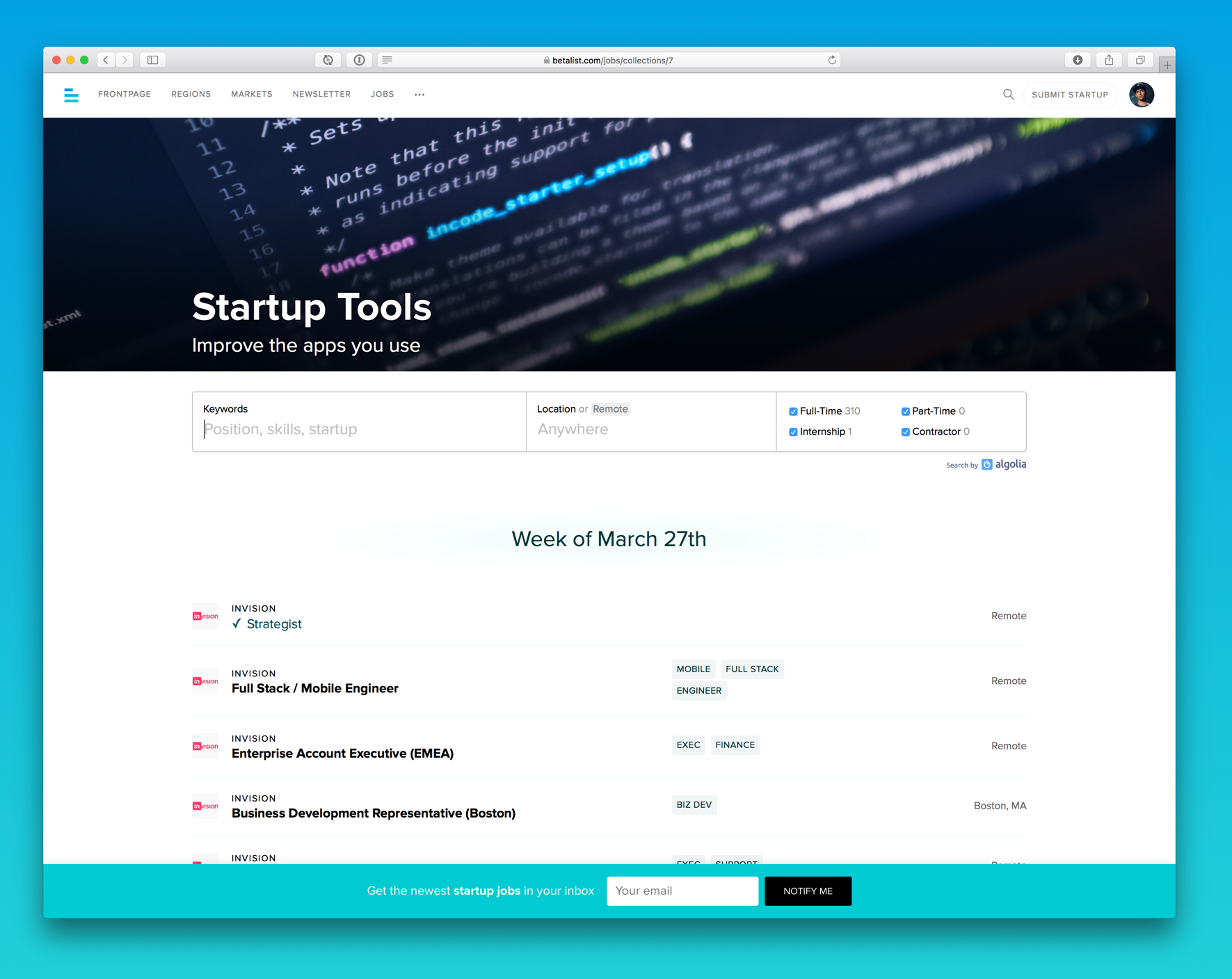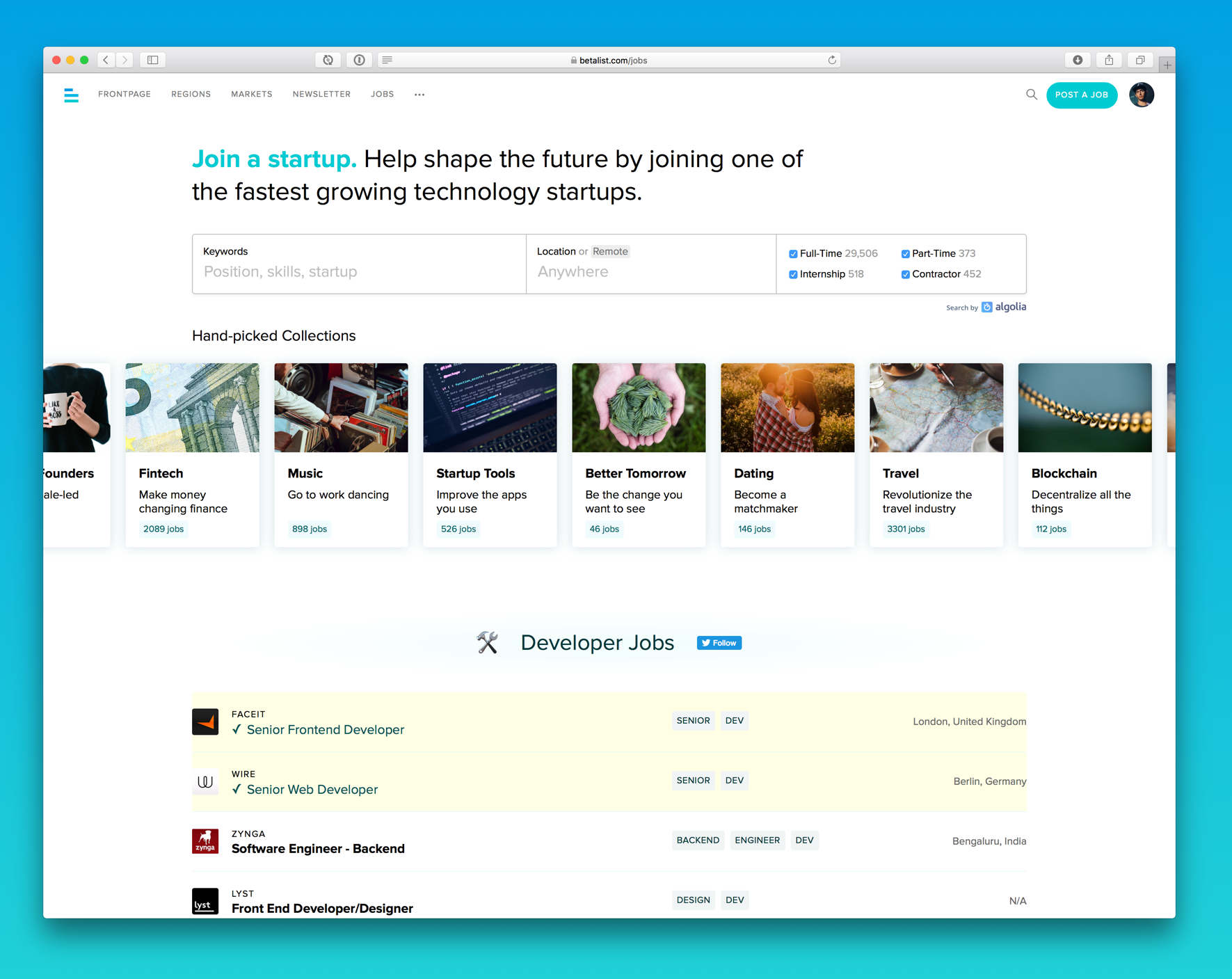 The idea was simple: what if you could browse job openings of every startup all in one place? Since we launched we made a ton of improvements based on your feedback and today we're launching a completely new feature called Job Collections.