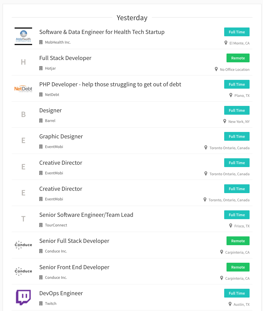 A daily aggregator of design, development & engineering jobs