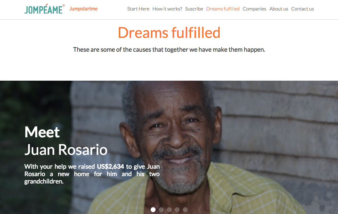 We just launch our site in english. This is the first version. We are based in Dominican Republic and our initial goal is to change the lives of at least 5 people living in extreme poverty in Latin America every week. Check it out, feedback is welcome, we are always looking to improve. @hipolitodelgado
