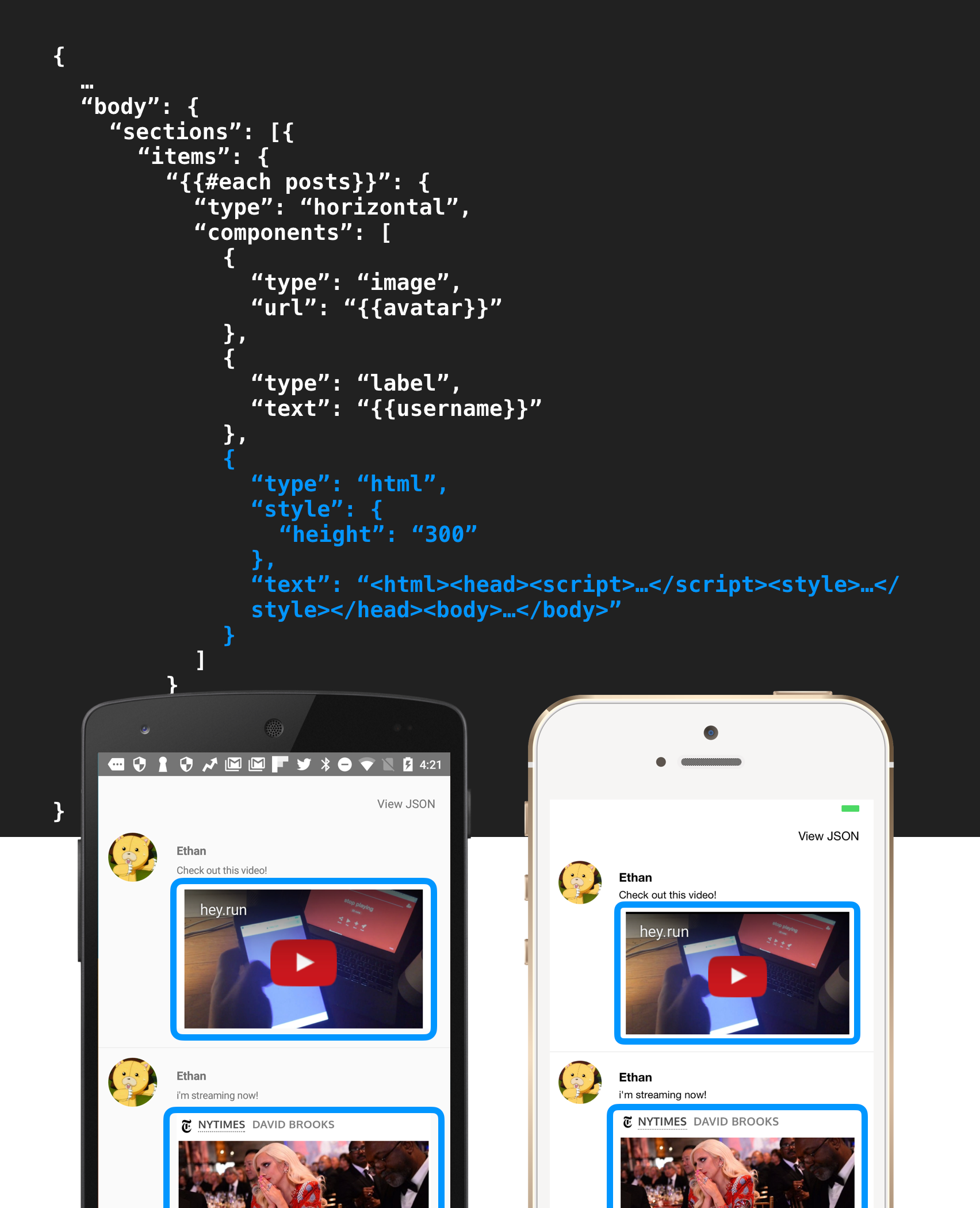 JSON Web Container is a new addition for Jasonette, where you can take ANY HTML+Javascript+CSS and turn them into a native component you can plug in. And all this with just a single JSON markup. You just take the entire HTML markup and wra… See more