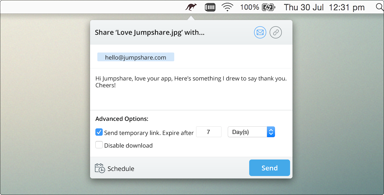 We just launched an all-new Mac app that allows you share files quickly from the comfort of your desktop with a simple drag and drop to the menu bar. Now you can auto-upload screenshots, email files directly from the app, and share work even faster with built-in screenshot annotation, screen recording, and note-taking tools.