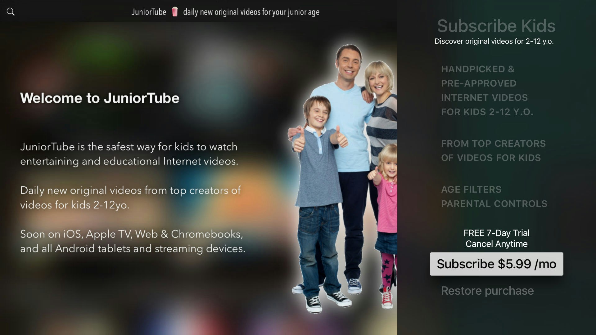 Hi everyone! JuniorTube is our effort since 3 years now, toward providing safe, curated, pre-approved Internet videos for kids under 13, for their education or entertainment. But JuniorTube is also about PARENTS. We're the ones who are asked by our kids "let me watch this, let me watch that on YouTube" and we shouldn't just let them browse for Internet vide… See more