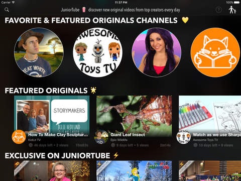 Hi everyone! This is literally a Snapchat of videos made for kids 2-12 y.o. The videos made for kids expire from the front page after a few weeks, while other new videos are posted daily. The UI is similar to other streaming services like Netflix, to keep things familiar. The content is first filtered, pre-approved and uploaded by talented independent (famou… See more